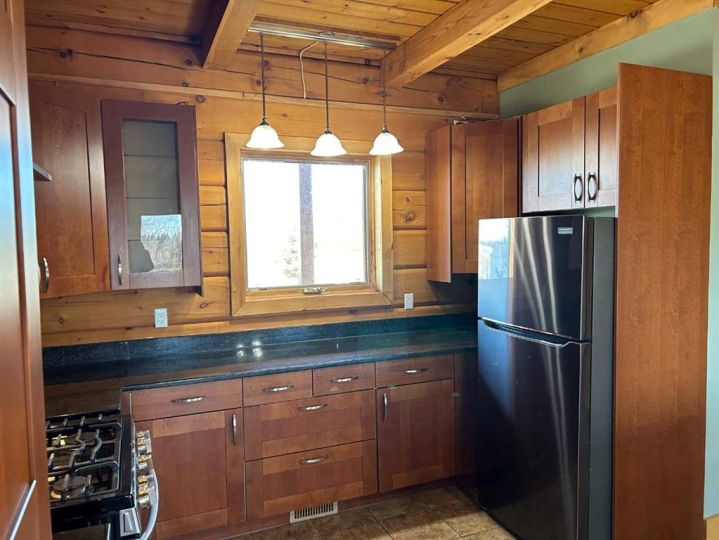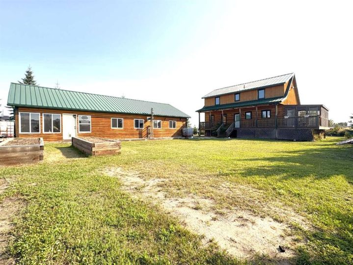 A beautiful log home, walking distance to sandy beaches of Buffalo Lake, serenity of country living, it doesn't get much better than this! This charming log home has the space for any size family, over 1800 sqft. on main and upper floor and a finished basement, you will be impressed the minute you walk in, the main floor features a large living room, cozy fireplace and exposed beams throughout, the spacious dining room is perfect for those family gatherings, with garden doors to covered screened in deck, you will love the kitchen, wood cabinetry, beautiful granite counter tops, gas stove, the island is the perfect place to be when preparing those holiday dinners, convenient 2pc bathroom and laundry area off back door, the upper floor has a spacious primary bedroom with another cozy fireplace, tv and walk-in closet, 5pc Jack and Jill ensuite/ main bath, 2 more good size bedrooms, finished basement has perfect area for games room, extra large family room could be converted into huge sleeping area for family & friends, mechanical room has more than enough storage space, ICF block foundation and in-floor heat will make this a warm and cozy basement, you will spend as much time outside as you do inside, sit on the covered front deck with your morning coffee and watch the sunrise, then watch the sunset on the back deck, the screened in deck has N. gas for bar-bq and N. gas firepit, the 28'x40' garage has all the room to park & store all your lake toys, the 16'x28' addition to the back of the garage was used as a greenhouse, a great place to start your plants for the 6 raised garden beds, all this sits on a large .46 acre lot, you will truly enjoy all four seasons in this picturesque location, Buffalo Lake is the largest lake in central AB. boating, fishing, paddle boarding in the warm months, skating, sledding, cross country ski, ice fishing in the winter months, what a beautiful place to create your family memories