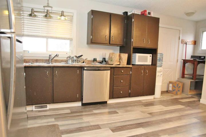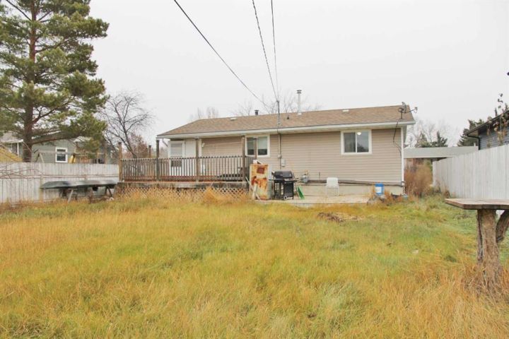 Nicely updated 4 bedroom home, in Lashburn SK. This 1980 home is within walking distance to the schools and golf course, and offers 3 bedrooms and one full bathroom on the main level. The primary bedroom has direct access to the main level bathroom as well. The kitchen and living room are nice and open, with a wood fireplace in the living room. Access to the back deck and fenced backyard off the kitchen. The basement has a finished family room, with fourth bedroom and direct access to another 4 piece bathroom with jacuzzi tub and separate shower. The lot provides enough space for a new garage off the back alley if desired.