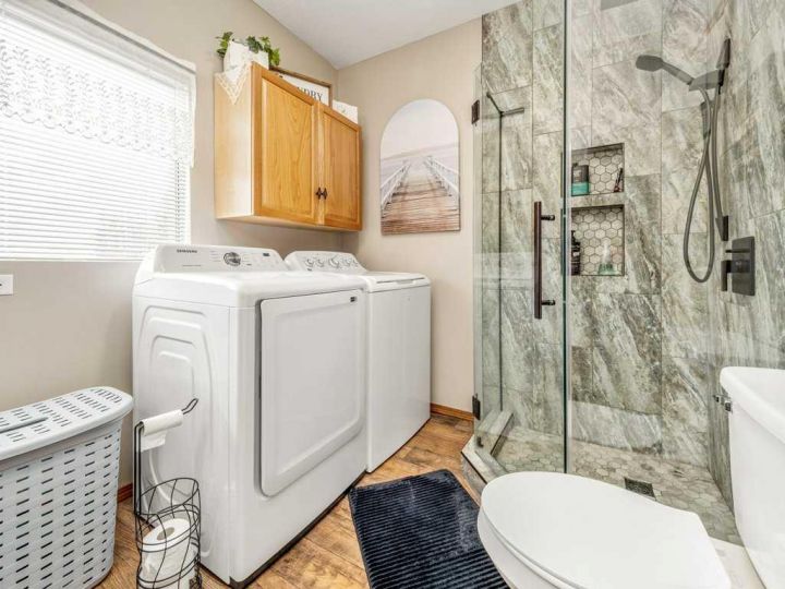 Dishwasher, Dryer, Refrigerator, Stove(s), Washer, Window Coverings