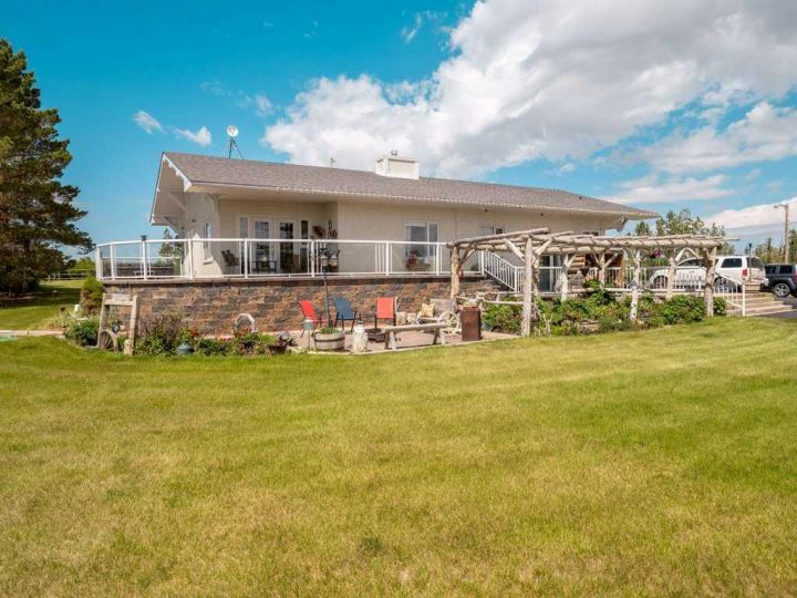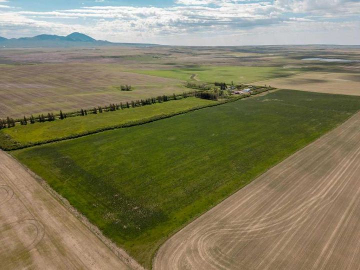 Listed well below appraised value! Nestled in a picturesque area with the Sweetgrass Hills as a stunning backdrop, this 79.5-acre property offers a unique blend of rustic charm and modern convenience. Just 25 minutes from the many amenities in Milk River and just over a hour away from Lethbridge, this property boasts a well-maintained house, originally built in 1962 and thoughtfully updated in 1997 with new wiring and plumbing. The home features durable shingles installed in 2017. The expansive land includes 72 farmable acres, with 58 acres of hay sown two years ago and 14 acres sown four years ago. The hay provides a potential source of revenue, making this property not only beautiful but also practical. The property also benefits from being part of the local water co-op, ensuring reliable water access for agricultural and domestic needs. Additional structures include a spacious 50x31 shop built in 1997, complete with sewer and water access, a 20x14 overhead door, and a heater installed four years ago. Attached to the shop is a 50x24 cold storage area, as well as a large 52x37 barn, perfect for housing equipment or livestock. Horse enthusiasts will find plenty of space and resources to accommodate equine activities. Located near the beautiful and culturally significant Writing-on-Stone Provincial Park, this is a rare opportunity to own a versatile and productive piece of land in a breathtaking location.