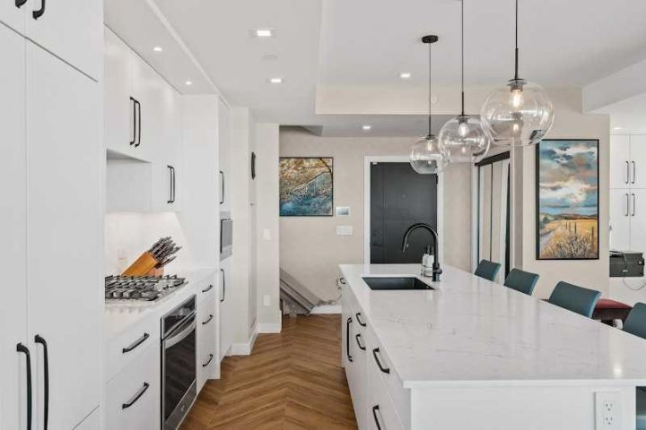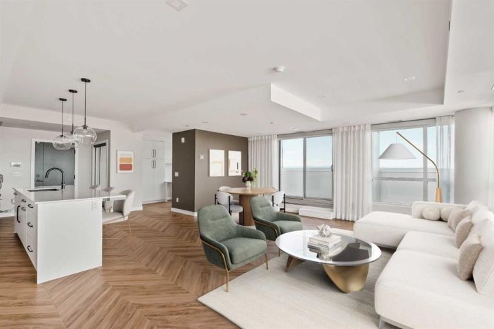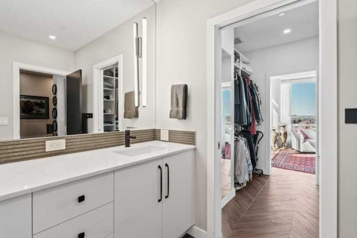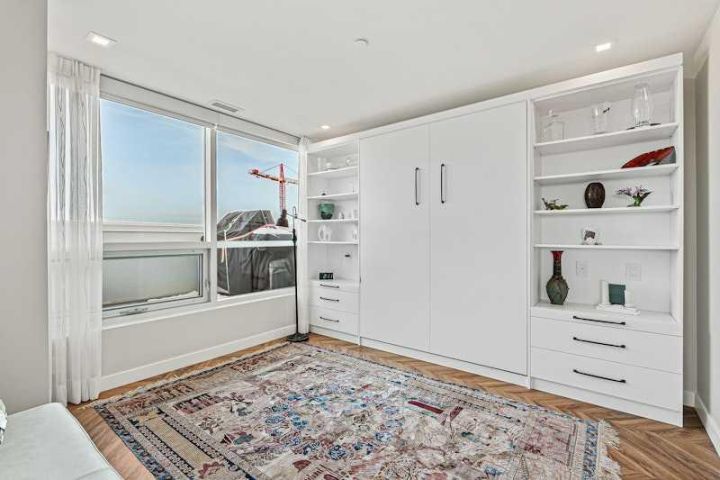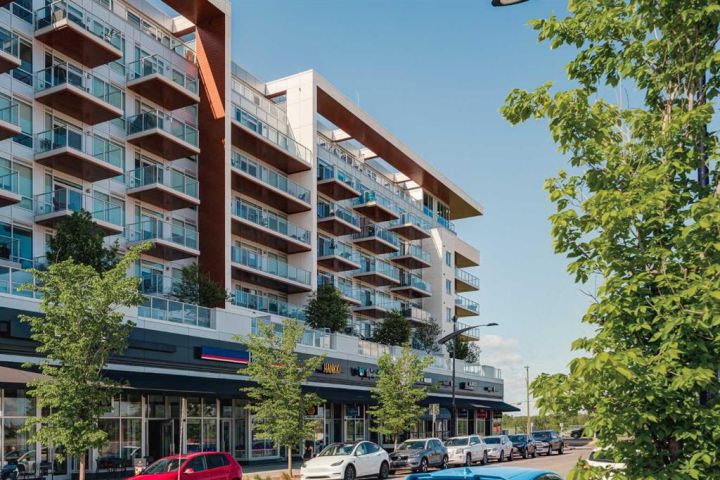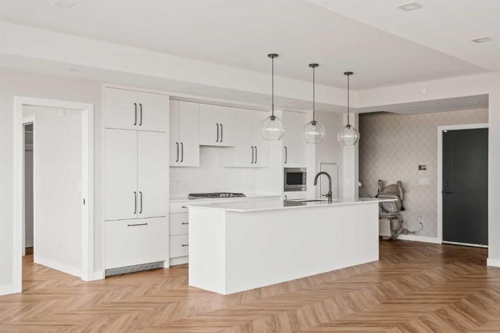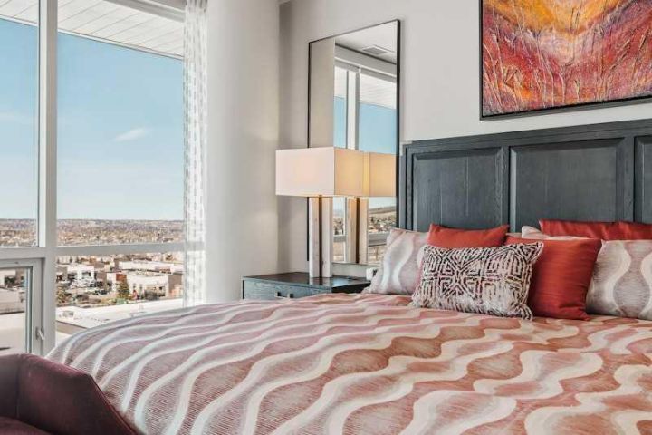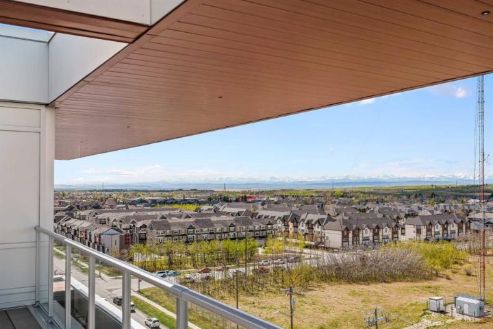 Proudly presenting Suite 717, the most coveted West facing corner penthouse in the prestigious Gateway buildings. This extraordinary home offers stunning panoramic mountain views, impeccable custom upgrades, and a lifestyle of sophistication and comfort. Thoughtfully designed, the home features electric blackout blinds on all windows, a high-end security system with burglar-proof locks, and a versatile main floor with a custom Murphy bed, built-in office, two separate office spaces, refined window treatments, a customized laundry room, and comfort-raised toilets. The gourmet kitchen is a true showpiece, boasting a single bowl sink, garburator, oversized globe pendant lights, dimmable lighting, and upgraded pull out waste bins. Additional luxuries include two premium parking stalls near the elevator, two storage lockers, accessibility features throughout, and a bonus spacious storage area under the stairs. Gateway’s building amenities are just as impressive: air conditioning, chevron flooring, quartz countertops, LED square pot lights, solid core doors, soft close drawers, and a gas line on the patio. Built in 2019 with concrete construction and exceptional soundproofing, this boutique style building is unlike anything else in the city. Residents enjoy access to a rooftop patio, stylish residents' lounge, concierge service, visitor parking, EV chargers, and secure bike storage. Located steps from UNA Pizza, Deville Coffee, F45 Gym, Hankki, YYC Cycle, and more, with quick access to Old Banff Coach Road, Stoney Trail, and nearby mountain escapes. The growing West District will soon offer over 1 million square feet of retail and commercial space, designed for a walkable lifestyle with 20-ft sidewalks and bike paths. Just 15 minutes from downtown, 5 minutes to Winsport, and 60 minutes to the Rockies, Suite 717 offers unmatched urban convenience with a breathtaking natural backdrop. Book your showing today!