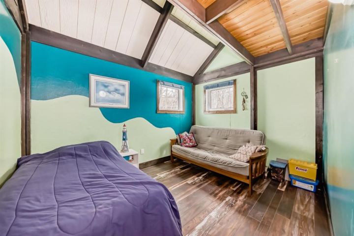 Upstairs, the loft—currently used as a bedroom—has endless possibilities. It could easily be turned into a tranquil retreat, a home office, or a creative space. The choice is yours!