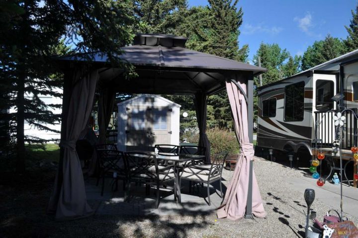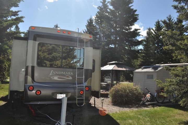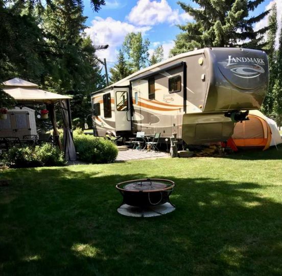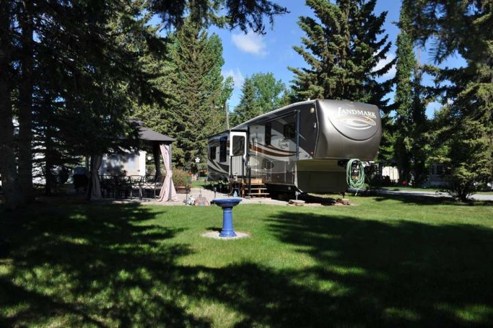 When looking for a great leisure park for you and your family look no further than the Tall Timber Leisure Park and this high-end, EXECUTIVE, like new HEARTLAND - Landmark - Rushmore 2011 travel trailer that has only ever been pulled three times, as Tall Timber has been its home. When discussing this RV unit the list is endless but the following are just a few of the added options: Air Hitch, Full body paint (no decals to fade over time), Stackable washer and dryer, Triple slide awning package, 4 point hydraulic leveling system, Keyless entry, Electric fireplace, 110v heating pads for holding tanks, 19" LCD Tv with remote on a hideaway safety system, generator prep system set up with control panel inside the trailer to mention just a few! The great upside with this opportunity as you have your own lot for this unit to continue to reside at Tall Timber or hook up and head out on destinations whenever your heart desires. There is absolutely NOTHING this unit lacks and the park amenities, staff, location are all greatly sought after. This is the perfect lot with green space on the north side giving you extra space for entertaining, and the lot itself has had a large amount of TLC since the current owners purchased it, with nicely landscaped lawn, walking stones, and a beautiful hard top gazebo sitting area around the firepit. There is a nice sized storage shed on the west side of the lot for all those little extras that you may need while enjoying your own little oasis at Tall Timber. This leisure park has great amenities including an indoor pool, hot tub, horse shoe pits, frisbee and outdoor games area, baseball diamond, playground and countless walking paths throughout the west country's natural environment. It is located on the eastern side of the beautiful town of Sundre which has shopping as well as some wonderful restaurants, famous Sundre Pro Rodeo, but the true highlight is the fact that you are mere minutes from the solitude of the west country where adventures never end and only an hours drive from Calgary. It truly is a gem!!