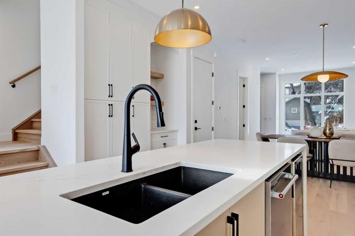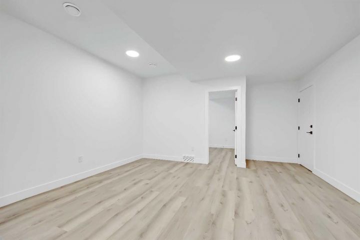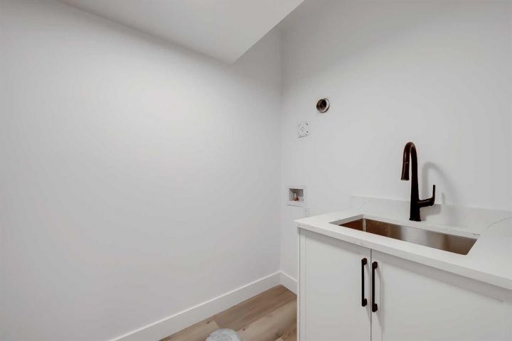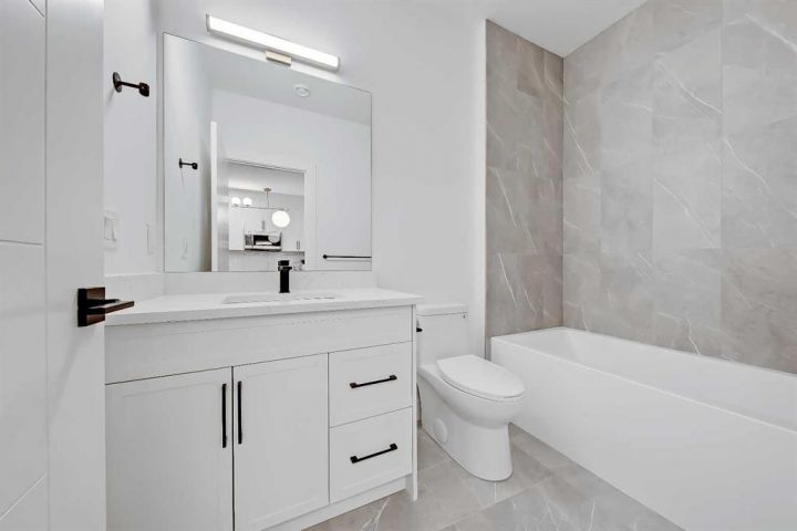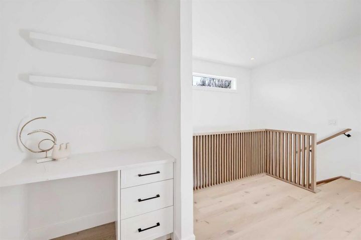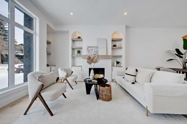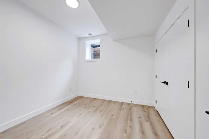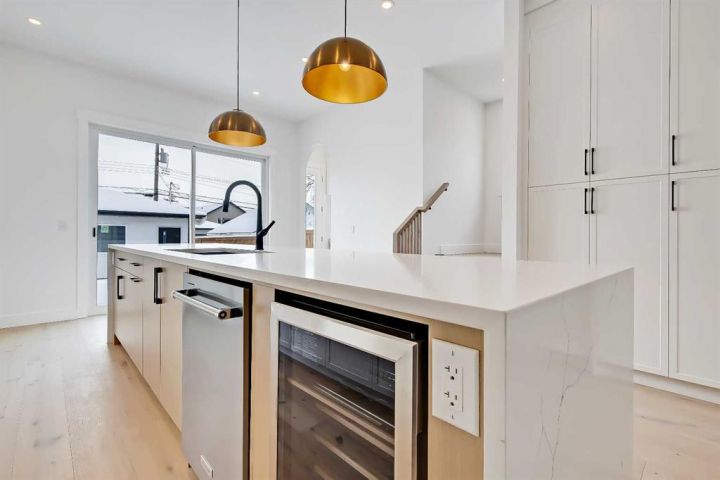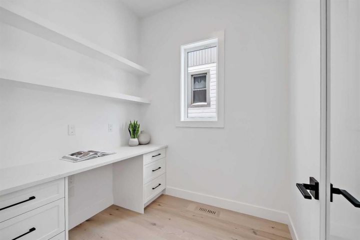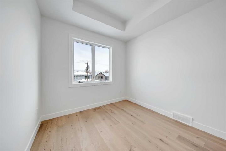 Look at this curb appeal! And that’s only the beginning of this immaculate, highly upgraded designer SEMI-DETACHED infill in Tuxedo Park! Over 2500 sq ft of living space across 5-BEDS, including a fully developed LEGAL 2-BED BASEMENT SUITE (subject to permits & approval by the city) w/ it’s own private entrance & separate laundry! This sought after location offers an ideal location for families, w/ parks, schools, shopping, & amenities all around. The inside of this incredible home showcases engineered hardwood flooring, beginning in a lovely open, spacious front living room w/ an inset gas fireplace w/ tile surround, & large windows overlooking the front yard. A dedicated HOME OFFICE shares an open floorplan w/ the dining room and large, central kitchen, which features extensively upgraded custom cabinetry, an upgraded stainless steel appliance package, an oversized island w/ lots of bar seating, & an oversized built-in pantry! The kitchen is also flooded w/ natural light from the large sliding patio door for quick & seamless access to the SOUTH back deck w/ a gas line for a BBQ. There’s also a mudroom w/ tile flooring, a custom built-in bench w/ hooks, & a walk-in closet that offers an easy transition outdoors & an elegant 2-pc powder room w/ a stylish vanity & undermount sink. Upstairs, the expansive primary suite features a sky-high vaulted ceiling welcoming you into this well-designed retreat, complete w/ PRIVATE BALCONY, a walk-in closet, & an outstanding 5-pc ensuite w/ barn door entrance, modern vanity w/ dual sinks, a free-standing soaker tub, a fully tiled walk-in rain shower w/ bench, & heated tile floors. Two secondary bedrooms have walk-in closets & share access to the main 4-pc modern bath. A large, tiled laundry room features a quartz folding counter, & a linen closet in the hallway adds additional storage. With its own private, secure side entrance, the legal basement suite (subject to permits & approval by the city) is an excellent mortgage helper or mother-in-law suite w/ contemporary touches found in the rest of this upscale home. Luxury vinyl plank flooring runs throughout the suite across the spacious open-concept space. The modern kitchen features custom cabinetry, quartz countertops, an elegant backsplash, & a good-sized central island for even more counter space & storage. There’s also a separate laundry, a sizeable 4-pc bathroom, & two bedrooms w/ built-in closets. Dual furnaces allow for a comfortable atmosphere for whoever enjoys this modern space. Don’t miss this fantastic opportunity! *Photos from similar project by the same builder, some finishes may vary*