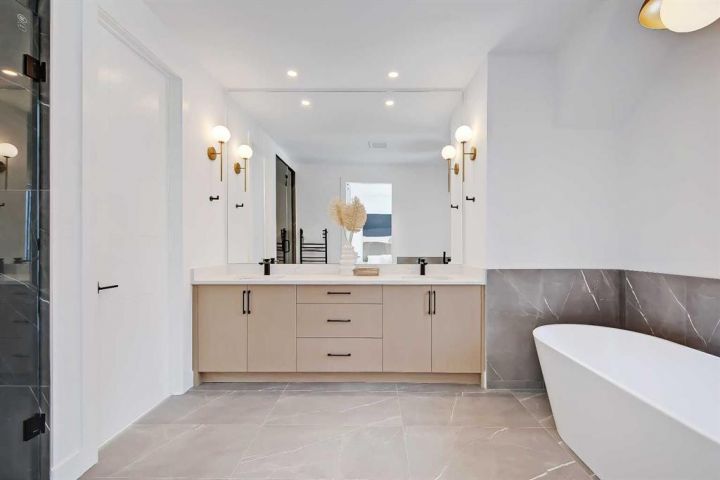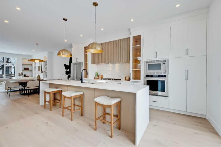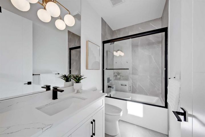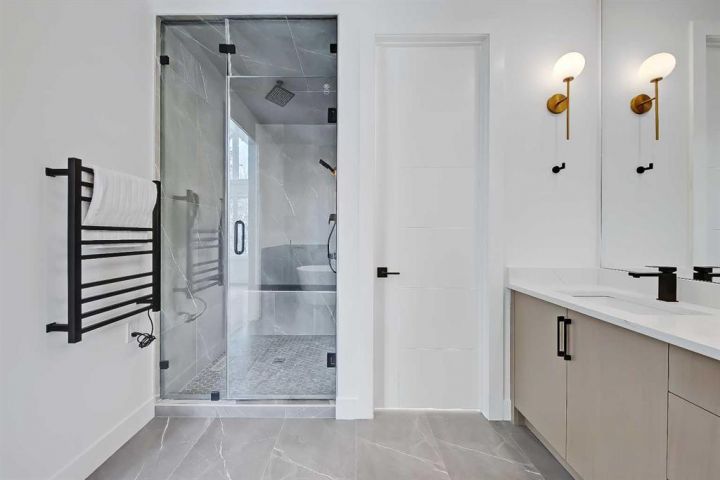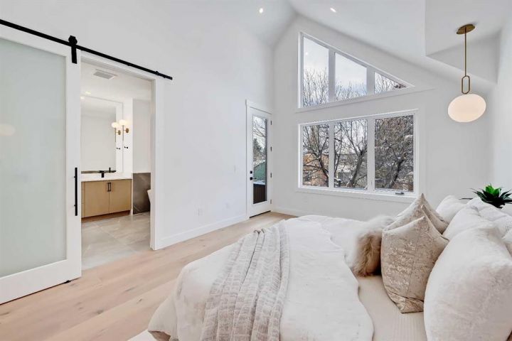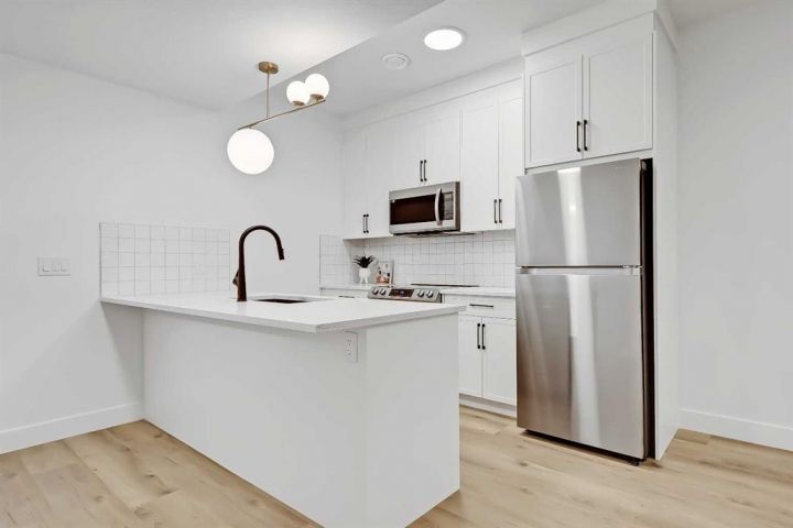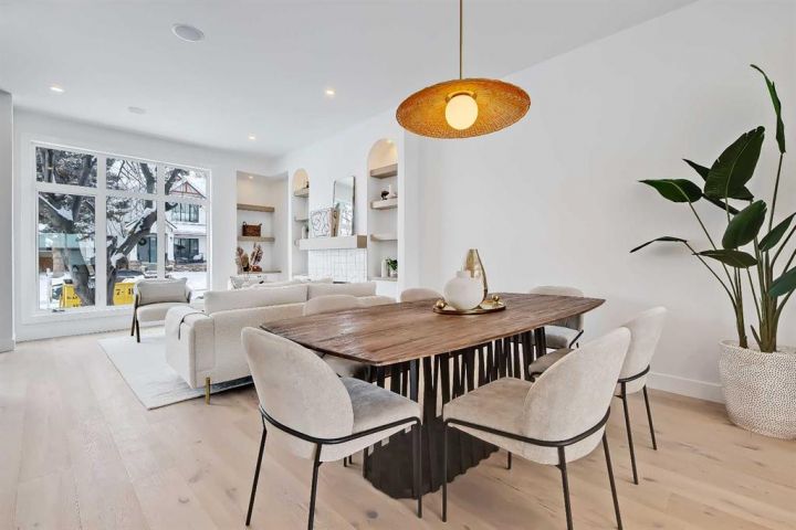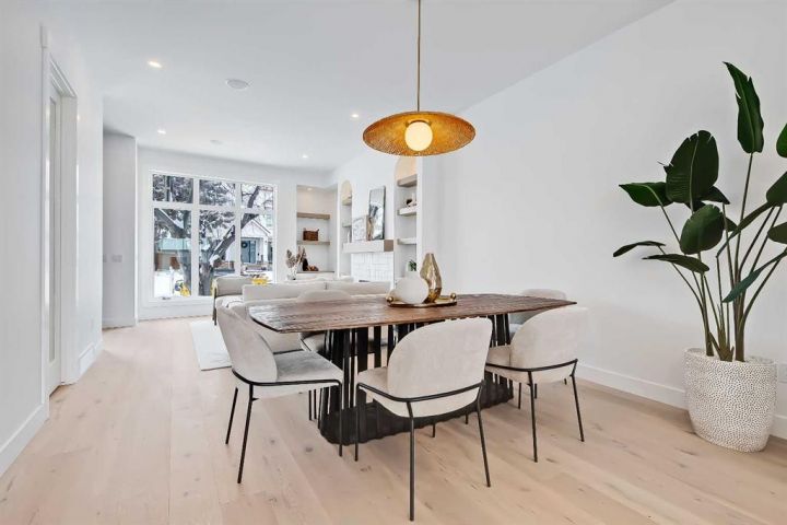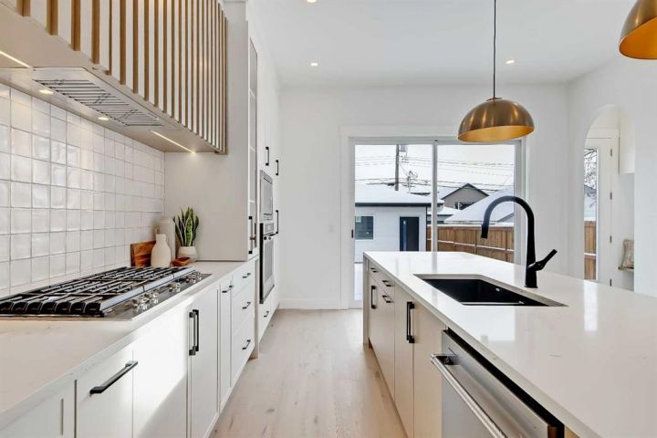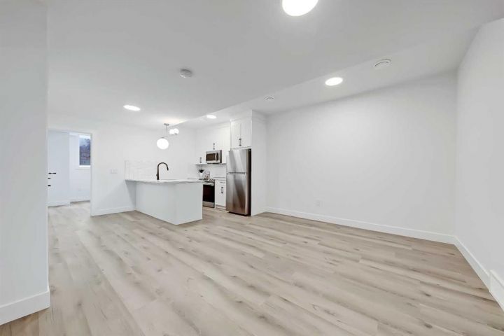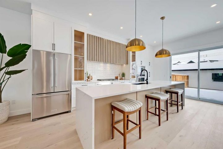 Look at this curb appeal! And that’s only the beginning of this immaculate, highly upgraded designer SEMI-DETACHED infill in Tuxedo Park! Over 2500 sq ft of living space across 5-BEDS, including a fully developed LEGAL 2-BED BASEMENT SUITE (subject to permits & approval by the city) w/ it’s own private entrance & separate laundry! This sought after location offers an ideal location for families, w/ parks, schools, shopping, & amenities all around. The inside of this incredible home showcases engineered hardwood flooring, beginning in a lovely open, spacious front living room w/ an inset gas fireplace w/ tile surround, & large windows overlooking the front yard. A dedicated HOME OFFICE shares an open floorplan w/ the dining room and large, central kitchen, which features extensively upgraded custom cabinetry, an upgraded stainless steel appliance package, an oversized island w/ lots of bar seating, & an oversized built-in pantry! The kitchen is also flooded w/ natural light from the large sliding patio door for quick & seamless access to the SOUTH back deck w/ a gas line for a BBQ. There’s also a mudroom w/ tile flooring, a custom built-in bench w/ hooks, & a walk-in closet that offers an easy transition outdoors & an elegant 2-pc powder room w/ a stylish vanity & undermount sink. Upstairs, the expansive primary suite features a sky-high vaulted ceiling welcoming you into this well-designed retreat, complete w/ PRIVATE BALCONY, a walk-in closet, & an outstanding 5-pc ensuite w/ barn door entrance, modern vanity w/ dual sinks, a free-standing soaker tub, a fully tiled walk-in rain shower w/ bench, & heated tile floors. Two secondary bedrooms have walk-in closets & share access to the main 4-pc modern bath. A large, tiled laundry room features a quartz folding counter, & a linen closet in the hallway adds additional storage. With its own private, secure side entrance, the legal basement suite (subject to permits & approval by the city) is an excellent mortgage helper or mother-in-law suite w/ contemporary touches found in the rest of this upscale home. Luxury vinyl plank flooring runs throughout the suite across the spacious open-concept space. The modern kitchen features custom cabinetry, quartz countertops, an elegant backsplash, & a good-sized central island for even more counter space & storage. There’s also a separate laundry, a sizeable 4-pc bathroom, & two bedrooms w/ built-in closets. Dual furnaces allow for a comfortable atmosphere for whoever enjoys this modern space. Don’t miss this fantastic opportunity! *Photos from similar project by the same builder, some finishes may vary*