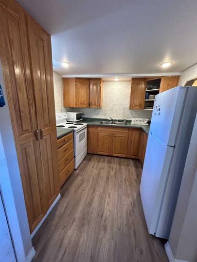 Money Maker Revenue Property... Open the Cover to this Property and see how well it is developed on Yes 2 Levels! Investment Property is well priced according to strong revenues, with great tenants in place. Covered deck leads to Heated Porch which gives access to both upstairs entry, as well as a separate Basement living space. Large poured concrete basement is below the entire upstairs footprint, and it includes laundry & utility room below the main floor porch. As such, this home essentially has a combined 2,000 sq ft of inside living space. All new windows ensure that both levels are well lite with an abundance of light for comfortable living. Each level with independent living quarters (2 beds/4pc bath, both Up & Down) has its own complete kitchen & laundry with full-size appliances. Upstairs also has a dishwasher. Two 2017yr furnaces heat each level, and they are controlled with new Digital thermostat(s). Property has had numerous upgrades in recent years including Brand NEW Roof in 2025, Hot water tank, most Appliances, Bathroom Improvements, flooring, new back door, fresh deck, vinyl windows, Etc. Property also comes with some basement suite furniture, lawnmower, and convenient Garden Shed. Backyard is fully fenced for pets & Peaceful treed Enjoyment of occupants. Located on a quiet Cul-de-Sac near a small park. Have a look, this property has been well upgraded and can really generate revenue!