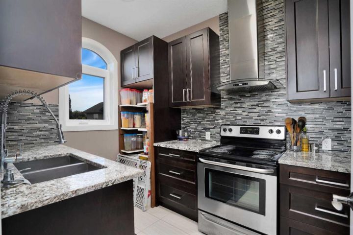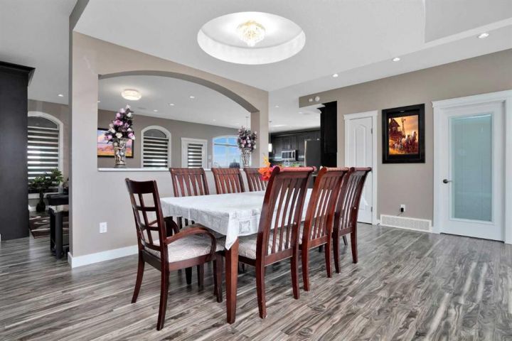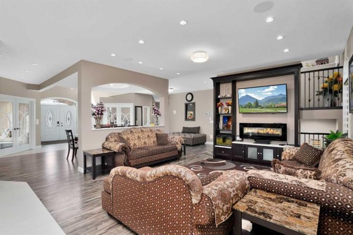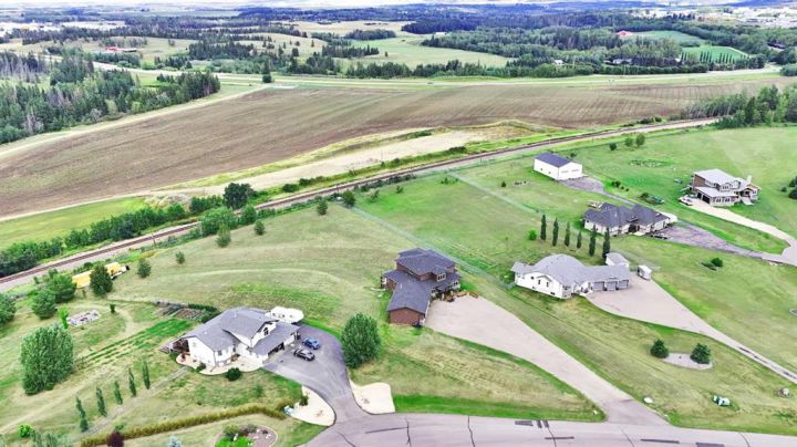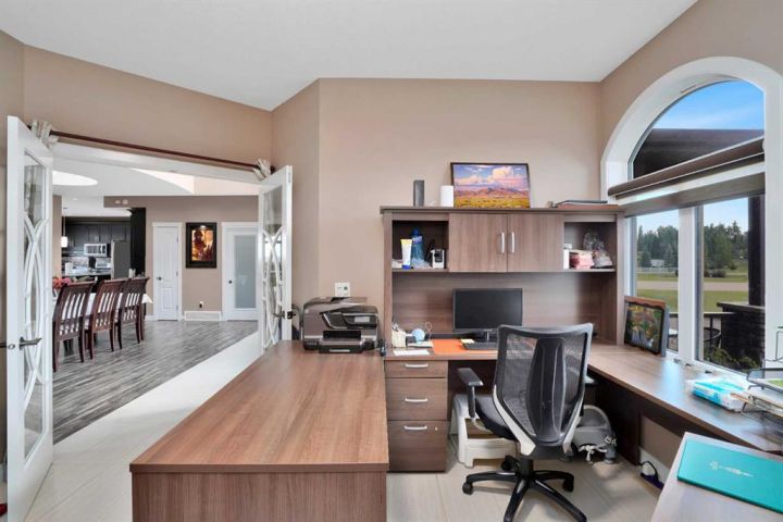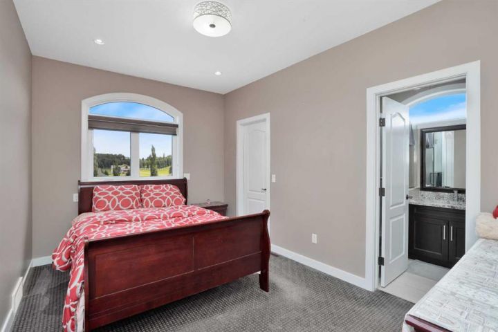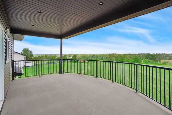 Located in the peaceful Valleyridge Estates, this custom-built 2-story home sits on a beautiful 2-acre lot by the Blindman River. The house is bright and airy, thanks to many windows that let in lots of natural light. It has five large bedrooms, including four main suites with walk-in closets and custom tiled showers. The main suite upstairs has a private deck with lovely views of nature. The home has two gourmet kitchens with granite countertops; the main kitchen also has a secondary spice/butler’s kitchen, great for entertaining. The living areas include a formal office, a cozy living room, a big family room, and a charming sunroom. There’s also a large loft on the second floor and a practical laundry room with granite counters and lots of storage. The main floor is 2,294 square feet, and the second floor is 1,343 square feet. The 2,260 square feet walkout basement has a bathroom and is ready for customization. The triple attached garage is heated and has 11-foot ceilings. The main suite’s second-story deck is covered for outdoor enjoyment, and the entryway has a grand 19-foot ceiling. The home also features two furnaces, dual central vacuum systems, and advanced insulation for energy efficiency and comfort. With its custom features and beautiful location, this home is a true example of luxury living.
