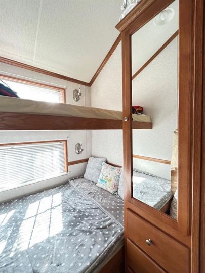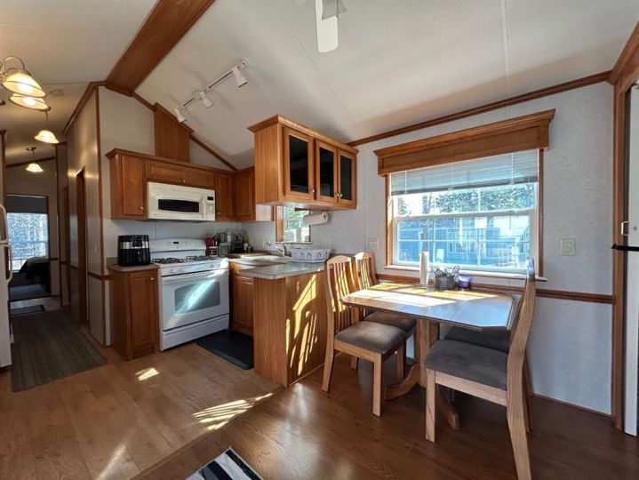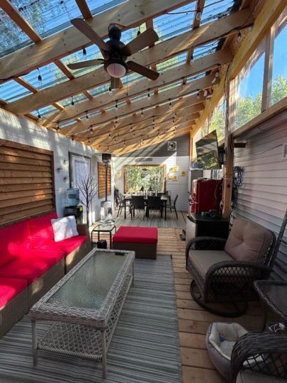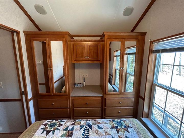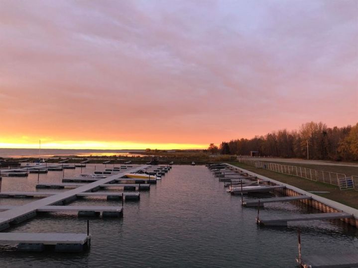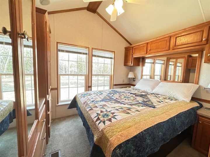 R.V Heaven & Marina is the perfect place if you are you looking for a summer retreat you can call your own! This oversized park model features a living room with a gas fireplace. The sofa and love seat both make into beds for those extra guests and there is a retractable divider to close off the living room area for more privacy. There are 2 bedrooms and a 3 piece bath. The second bedroom has built in bunkbeds. There is an abundance of storage throughout this unit. Extra features include: full size appliances, stackable washer & dryer, built in central vacuum, air conditioning and tankless hot water system. Outside of the park model there are many extras as well including a professionally built enclosed 12 x25 deck with exhaust fan, as well as a large lower deck that offers a great BBQ area and private outdoor seating with privacy walls all the way around or have your morning coffee on the front deck. The possibilities are endless. This great community is a great space to enjoy the summer evenings at the lake. RV Heaven has 94 lots within the park. The park is gated, there is a beautiful park and green space for the kids and adults to mingle, a shower house for those who'd rather have a little more space to get ready in. There is such a sense of community here that there is always activities going on that owners are welcome to partake in. Gather around your fire with your family and friends. The marina is just steps away as this lot is located in the pod closest to the marina. The area features the marina, beach, walking trails and convenience store just a short walk away. This is a condo'd property with fees being only $1480 per year. The season here runs May 15-September 30.