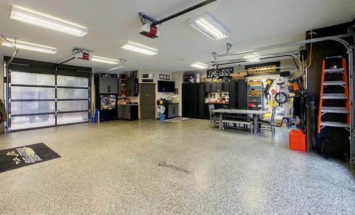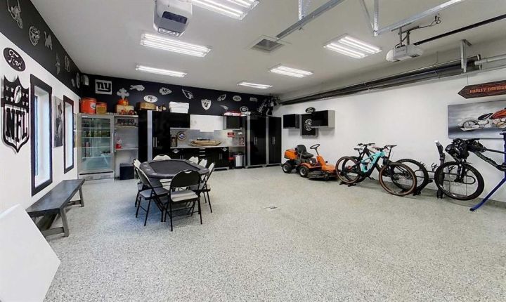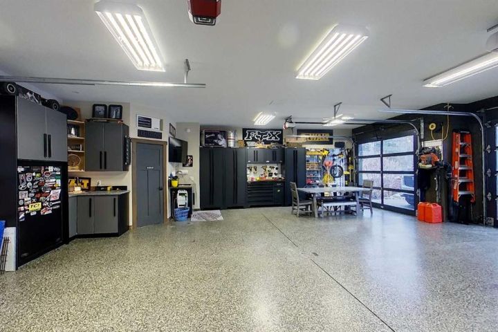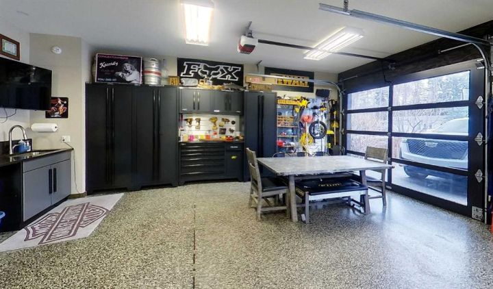 This heated garage is a true retreat — filled with storage, hot and cold running water, glass doors for natural light and privacy, epoxy floors and room to relax or work in comfort. Designed for everyone, this space goes far beyond the traditional garage.