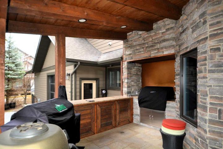 Step out to the covered back deck, complete with a built-in Wolf BBQ, pizza oven, and firepit area, ideal for cozy nights and social gatherings.