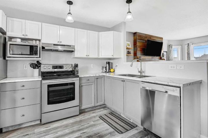 MOVE-IN READY, FULLY DEVELOPED HOME IN PINNACLE! Welcome to this beautifully updated bi-level on a quiet Crescent in the desirable neighborhood of Pinnacle Ridge! This home checks all the boxes with modern finishes, thoughtful updates, and a prime location just steps from walking trails, parks, schools, and the Eastlink Centre. The main level features an open-concept living room and kitchen, perfect for entertaining, with access to a two-tier deck and a landscaped backyard complete with a corner firepit area. The upper deck is ideal for gathering and BBQing, while the lower deck offers a private space to unwind. The kitchen boasts updated cabinetry with modern pulls, stainless steel appliances, and new countertops. The living room has been refreshed with a stunning shiplap and wood fireplace surround/ mantle. Vinyl plank flooring, updated lighting, and refreshed paint flow throughout the home, creating a bright and modern feel. Also on the main floor is the spacious primary suite with a walk-in closet and 3-piece ensuite, along with a second large bedroom and full bathroom. The main entrance provides direct access to the double attached garage and a storage closet is in the entryway. The basement is designed well with cohesive colors mirroring the upstairs, and an open layout which makes it the perfect space for entertaining and relaxing. It features a massive family room with a cozy wood-burning stove, a third bedroom, another full bathroom, a HUGE laundry room, and plenty of storage. Other highlights include an exposed aggregate driveway and fantastic curb appeal. This move-in-ready home in Pinnacle is waiting for you. Take a look today!