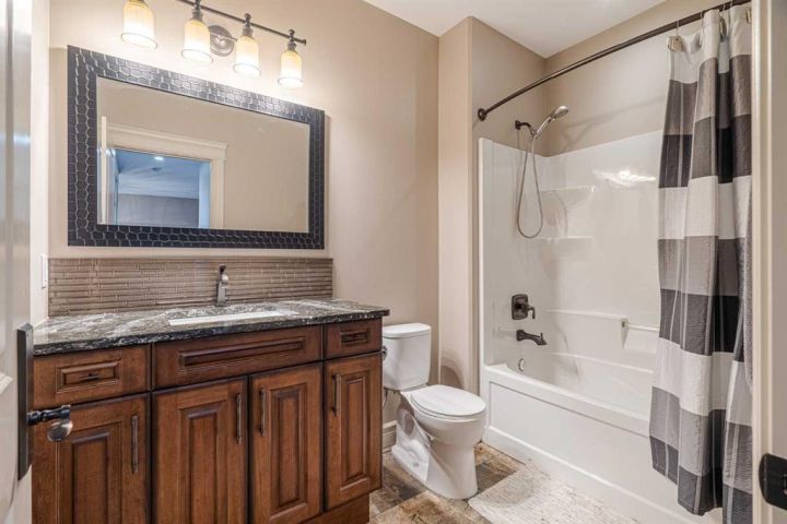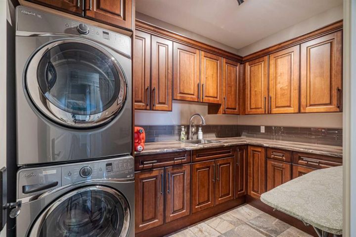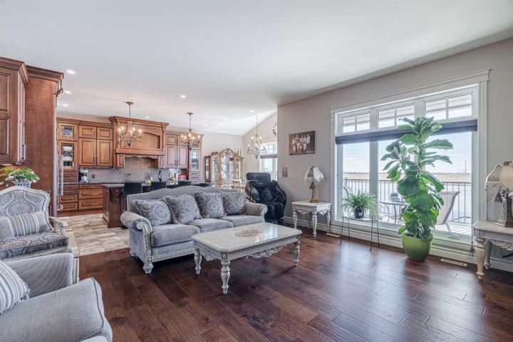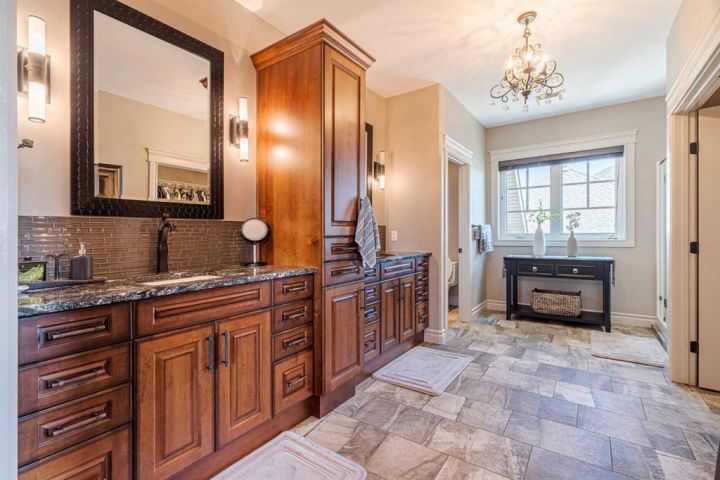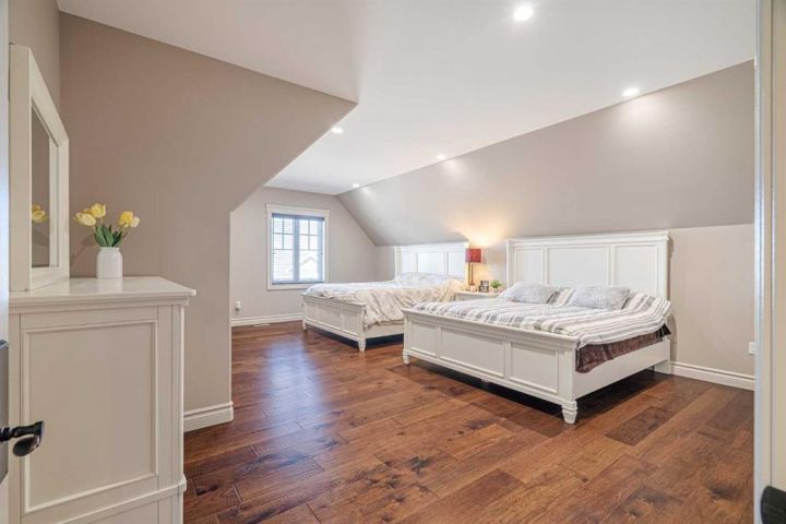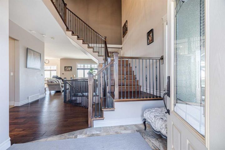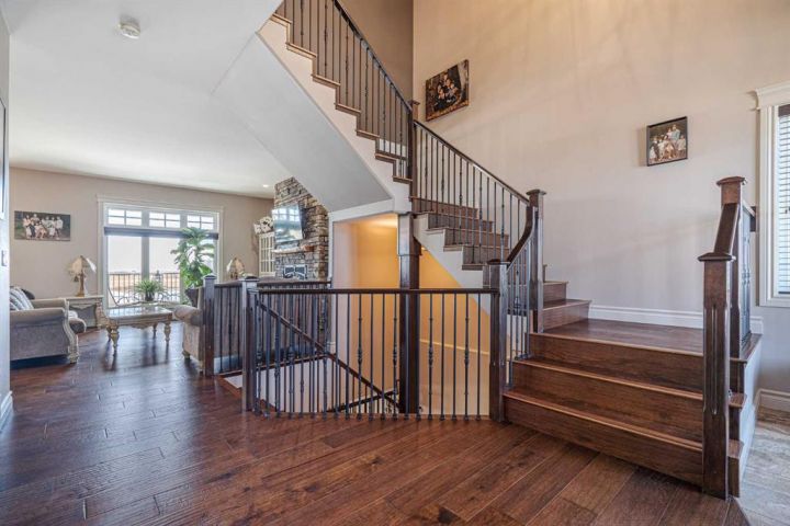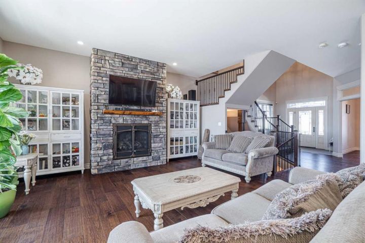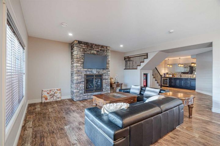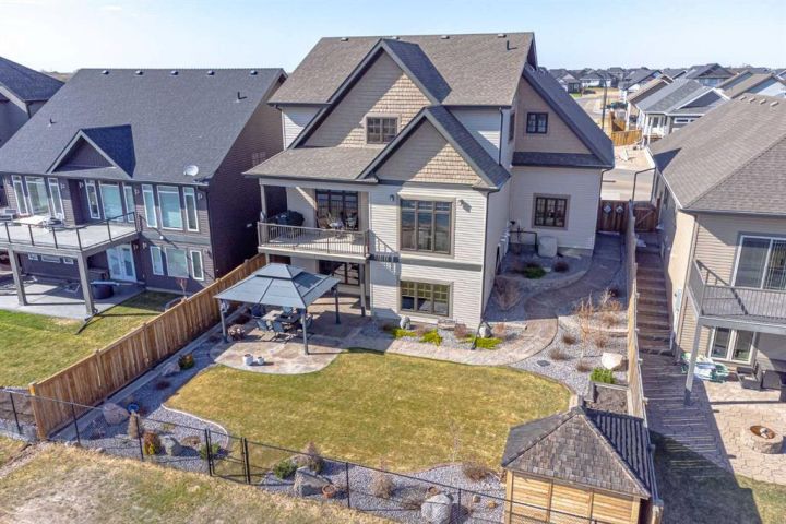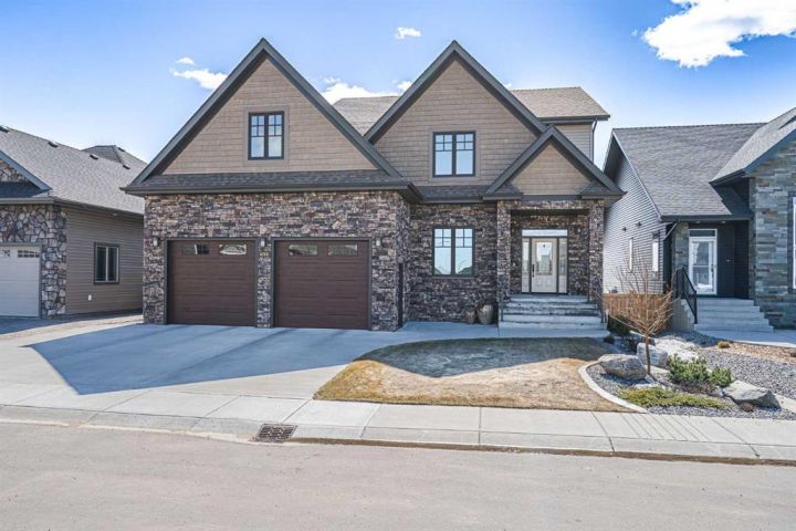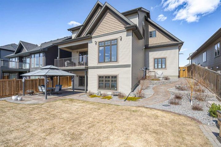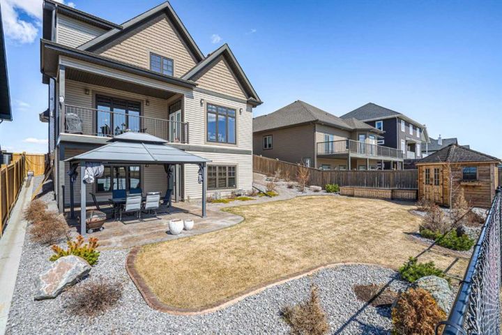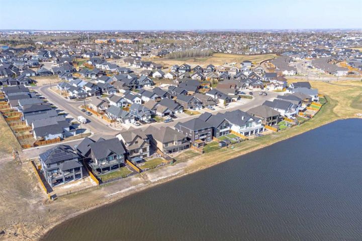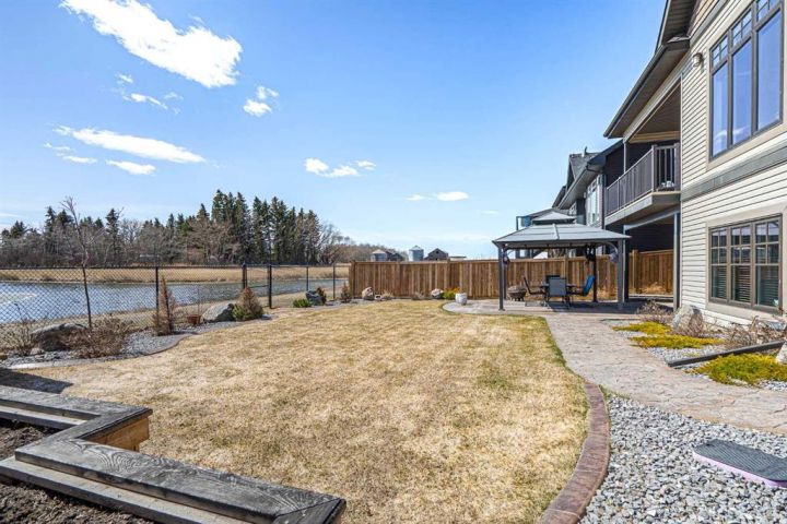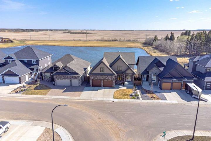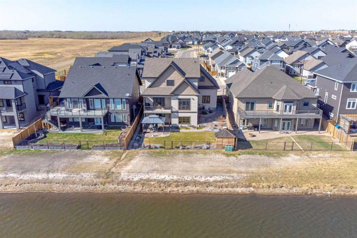 Welcome to Lakeside, where luxury living meets tranquil lakeside views. This executive 2-story home boasts a walk-out basement with beautiful southern views of the lake. As you step inside, you'll be greeted by 10' ceilings on the main floor, creating an airy and spacious atmosphere. The stunning butler's pantry is perfect for entertaining guests, while the den offers a quiet space to work from home. The floor-to-ceiling stone gas fireplace is the centerpiece of the living room, providing a cozy ambiance during colder months. Moving upstairs, the second floor features a beautiful laundry room with gorgeous cabinetry and a large primary bedroom with a stunning 5-piece ensuite. Two additional bedrooms including a 390 square foot bonus room serving as a massive bedroom offer ample space for family or guests. The walk-out basement has 9' ceilings and boasts a wet bar, perfect for hosting parties or game nights. The floor-to-ceiling gas fireplace adds warmth and ambiance to the space, while the bathroom and wet bar provide convenience and functionality. Outside, the gorgeous tiered landscaping, stamped concrete patio, and walkways provide the perfect setting for outdoor entertainment or a relaxing evening by the lake. During the winter months, take advantage of walking out your back door and go for a skate! Don't miss your chance to experience luxury lakeside living in this stunning home.