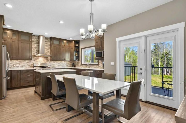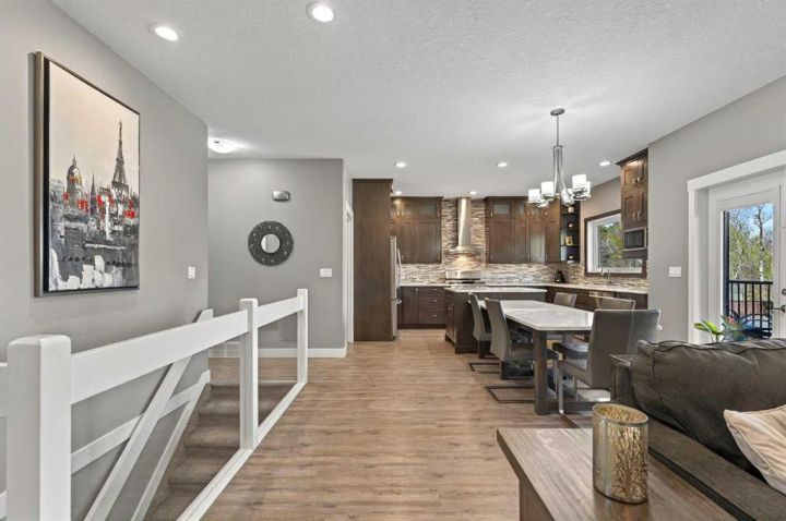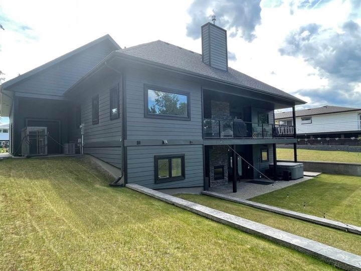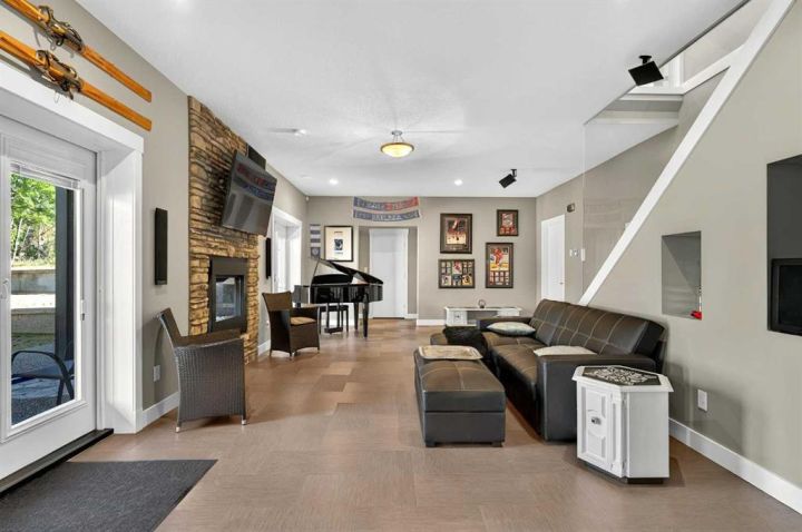 This home is an exquisite custom built 2015 1.5 storey home with walk out basement will drop your jaw to the floor! Located in the beautiful area of Sakwatamau drive, you have an acreage like feel with your .49 acre park lot. The exterior has a modern vibe with high end features that make it stand out above the rest. Built with ICF block form which keeps it cool in the summer, warm in the winter & matched with the triple pane windows, your utilities affordable. You are welcomed by a beautiful exposed driveway, matched to the retaining walls in the backyard. There is a stamped concrete porch attached, with a custom 8ft stunning front door. Walking in, you have a beautiful landscape of your living room, and eat-in kitchen with a view to your covered low maintenance deck and treed yard. The kitchen is beautiful with gas range, extra cabinetry, additional plugs in the island and a stunning built in quartz countertop as a dining table and the large pantry that provides so much extra storage. The primary suite is one of the most functional around. You have a door to the covered deck to enjoy your morning coffee, the ensuite has 2 separate areas to get ready for your day, and also a grand tiled shower with glass doors. The ensuite walks through to the walk-in closet of your dreams-WOW.. and follows through directly into your laundry room and again through to your mudroom! The flow is natural and so worth it! This home provides a loft or 1/2 storey upstairs that is the perfect bedroom for a teenage/ or rec space (663 total sq ft up there). It is sound proofed and has a walk-in closet, and 3-pc bath. The basement is fully finished with infloor heat and provides an incredible space for entertaining and guests! You are greeted by a grand wet bar, music room that is sound proofed that can also double as a huge bedroom, living space and the eye catching double sided fireplace that goes inside and outside. The hot tub on the lower level also stays and has wiring complete for a TV to watch the game while you relax! One more bedroom , & large 3pc bathroom completes the basement. There is built-in surround sound and 4 different sonos speakers in this home which means you can play 4 different genres of music (exterior, garage, primary bedroom and upstairs 3-pc bathroom). The triple car garage is 31X32 and offers a garage door out to the back yard, such a neat feature! If that wasn't enough, please make sure to check out the full feature sheet with your realtor with all the custom extras, including hot/cold taps,"hide a hose 50ft Vaccuum", hot water on demand, AC, triple pane windows.. the list goes on!