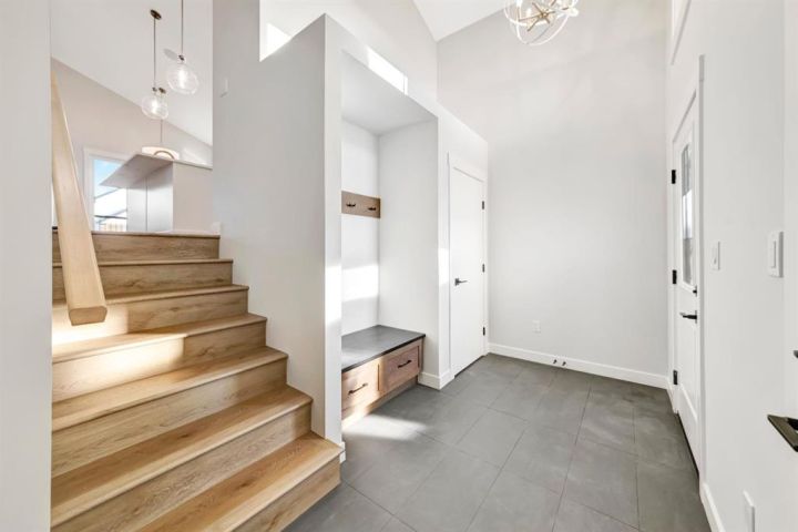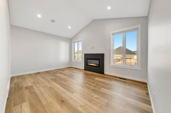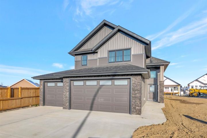 Stunning Modified Bi-Level in Desirable Lakeside Subdivision. Welcome to this beautifully upgraded 1,531 sqft modified bi-level offering comfort, style, and functionality in the sought-after Lakeside neighbourhood. Thoughtfully designed with high-end finishes, this home features quartz countertops throughout, triple pane windows, and a spacious triple heated garage. Enjoy the outdoors year-round with a covered and finished deck, while the exterior is enhanced with watt lighting for striking nighttime curb appeal and added security. The open-concept main floor boasts durable vinyl plank flooring extending through the main living areas, stairs, and upper level. The fully finished basement is cozy and inviting, with soft carpet and one of two electric fireplaces, perfect for relaxing evenings. The primary bedroom is a luxurious retreat, featuring a 5-piece ensuite with a soaker tub, custom tiled shower, and a stylish half-wall with glass to enhance the open spa-like design. Built-in speakers, upgraded cabinetry, and tile flooring in all bathrooms add to the home’s premium feel. This home will be move-in ready and is perfect for those seeking quality craftsmanship and modern comfort. Don’t miss your chance to live in one of the area’s best neighbourhoods! One of the seller's is a licensed Realtor in the provinces of AB & SK.