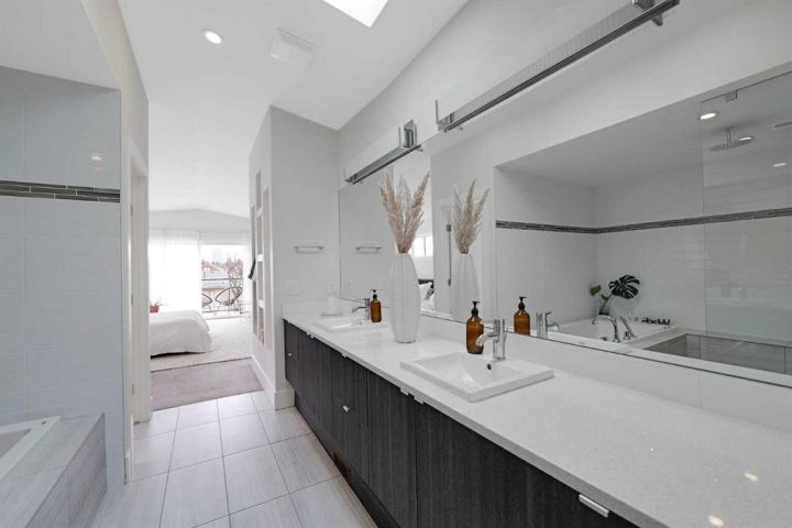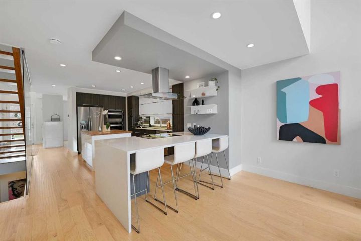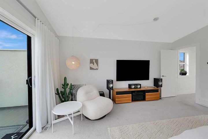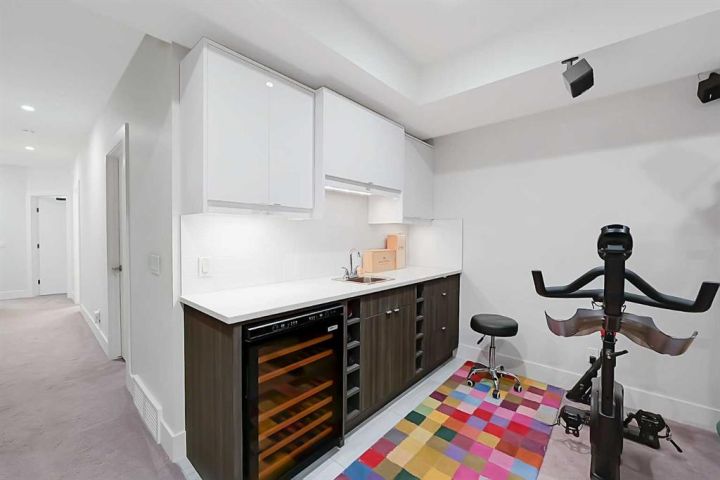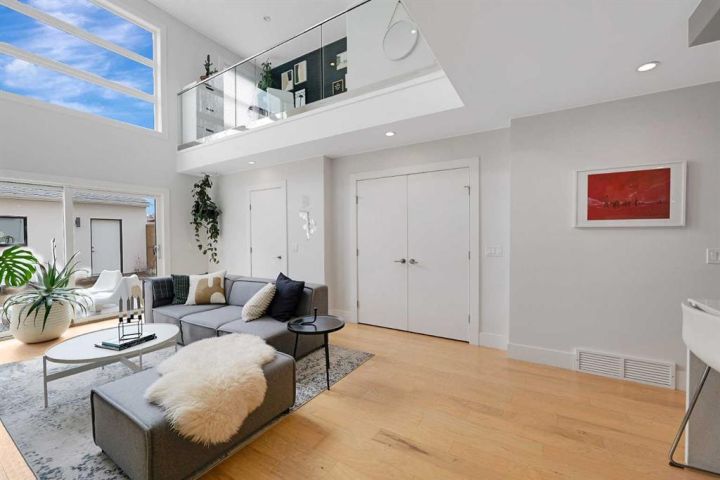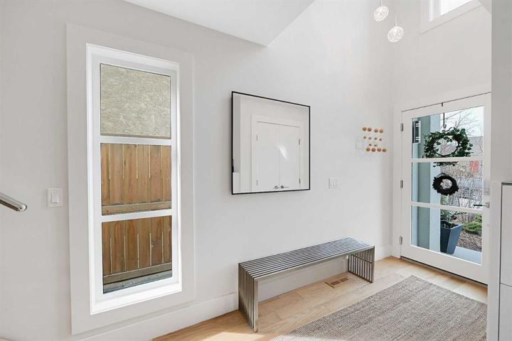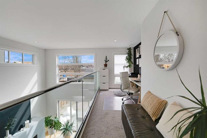 Thoughtfully crafted for both connection and retreat, this Nordic inspired home blends clean design, natural materials, and smart sustainability in one of Calgary’s most vibrant inner-city communities. A striking modern exterior hints at the refined living within, framed by lush landscaping and a smart irrigation system that keeps things green with minimal effort. A covered patio with a power retractable awning invites sunny mornings and relaxed evenings, while the insulated double garage—finished with epoxy floors and custom organizing panels—delivers both style and practicality. Step inside to a soaring two-story foyer, where sunlight dances through the custom open-riser wooden staircase, anchoring the home’s refined design. The main floor is built for entertaining and ease, featuring soaring ceilings, a sleek gas fireplace, a calming dining area, and a chef’s kitchen with dual oversized islands, quartz countertops, modern cabinetry with solid wood drawers, and premium stainless-steel appliances. The bright, airy living room opens directly to a south-facing patio, creating a seamless indoor outdoor flow. From the main floor, ascend to the second level, where you’ll find two spacious bedrooms sharing a beautifully appointed bathroom, an open gallery with a work-from-home office, and a convenient laundry room tucked seamlessly into the layout. Downstairs, the fully developed basement offers flexibility and privacy, complete with a fully equipped home gym and a private bedroom with its own ensuite—perfect for guests, teens, or extended family. The pinnacle of the home is the third-floor master retreat—a serene sanctuary featuring a spa-inspired ensuite, tranquil design details, and lovely views of Calgary’s downtown skyline. Just steps away, an additional bedroom offers the perfect nursery or toddler room, keeping your little one close in this elevated personal haven. Ideal for young professionals, this home offers the best of both worlds—minutes from downtown, with easy access to parks, pathways, and the highway to the mountains. Top-rated schools are also nearby, making this not just a home, but a long-term lifestyle investment. A rare blend of Nordic design, wellness-minded living, and mountain-bound freedom—this is inner-city elegance, redefined