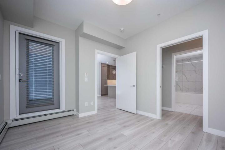 Tenant Occupied Until March 1, 2026 – Investment Opportunity in The Maple (55+) Bright and modern 1 bed, 1 bath unit (513 sq. ft.) located on the 2nd floor of The Maple, a 55+ complex in the University District adjacent to the Brenda Strafford Foundation. This open-concept suite features white-washed kitchen cabinetry, quartz countertops, a central island with breakfast bar, and stainless steel appliances including a smooth glass cooktop. Light cedar-toned laminate flooring, soft lighting, and floor-to-ceiling cabinets add to the inviting atmosphere. The spacious bedroom includes a walk-through closet and 4pc ensuite with marble-style flooring. Enjoy southwest exposure from the covered balcony, accessible from both the living area and bedroom. Residents benefit from optional access to Brenda Strafford Foundation amenities including a bistro, gym, hair salon, and social events (fee-based). Currently tenant-occupied offering a solid rental opportunity in a desirable, amenity-rich community.
