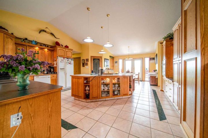 Spacious 2,736 sq. ft. home built in 1999, offering 3 bedrooms and 3 bathrooms all conveniently on one level. Designed for comfort and efficiency, the home features radiant heat and triple-glazed windows. Set on 10 +/- pending subdivision acres with two water wells, this property provides privacy and functionality for a variety of uses. Outbuildings include a 36’ x 60’ cold storage, 24’ x 36’ barn with box stalls, and an additional 36’ x 36’ cold storage, making it well-suited for agricultural, livestock, or hobby farm operations.