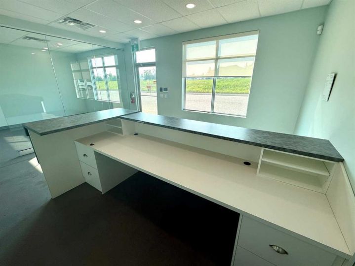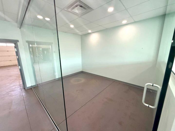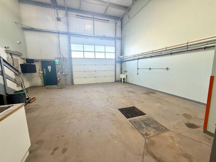 TURN-KEY Industrial shop/OFFICE FOR SALE. HIGH-END GLASS WALLS for the 3 Developed offices/ custom built-in reception space with customer 1/2 bath at the back, unfinished MEZZANINE, followed by a 24'9"'x 27'03" shop space. Completed with LED lighting, floor drain a 14' OHD with opener, ceiling height approximately 19' clear, 200 AMP Power, paved common areas w/ loads of paved customer parking. Great exposure off of 76 street for a mechanic shop, auto repair/ detailing, mechanical shop and so much more in this I1 zoned condo bay. Condo fees are $401.91/month and include water/ sewer/ landscaping/ snow removal & reserve fund contributions.