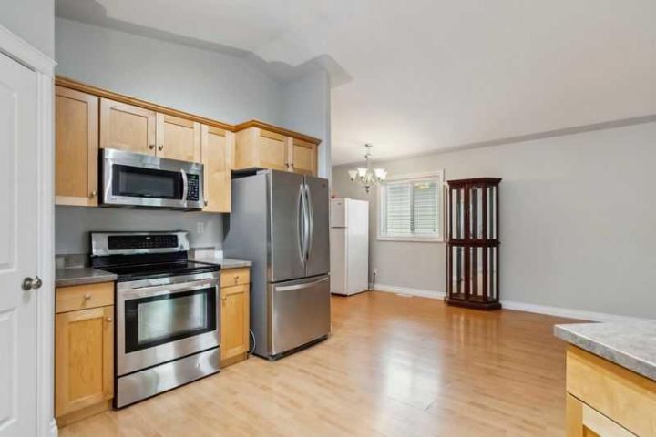 Stainless steel Fridge, stove, dishwasher, microwave, central air, window blinds and basement microwave