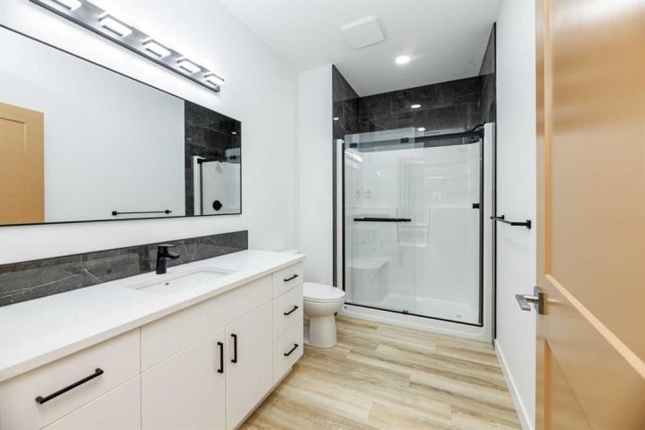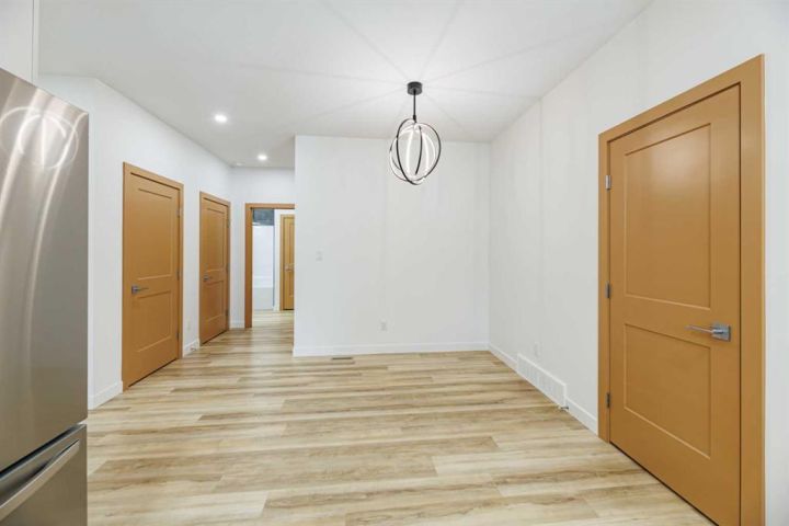 Senior Friendly fully finished bungalow. No basement! Crawl space with lots of room for storage. No Stairs! Open floor plan with all new appliances and quality finishing throughout with wheelchair access. 2 bedrooms and 2 baths. Primary bedroom is spacious with walkthrough closet and 3 piece c/w 5' Walkin shower with sit down feature. There is in suite laundry c/w washer and dryer. The second bedroom to use as an office or crafts room with the option to have extra sleeping area for your weekend guests. You will love the attached 22'9" x 13'8" garage to park your vehicle and extra storage that you have. NO stairs to contend with when transitioning from the garage to the main floor. Within steps of historical downtown Lacombe -shopping, ALL medical amenities, post office and all the beautiful shops - Dutchess Flower shop & Timeworn Charm to name a few, and the variety of eating establishments whether meeting a friend for a latte or having a dinner date at the ONA cafe/Broomtree cafe/Cilantro and Chives or wherever you choose. This is an ideal location for those not wanting to have the stress of driving to everyday appointments or necessities.