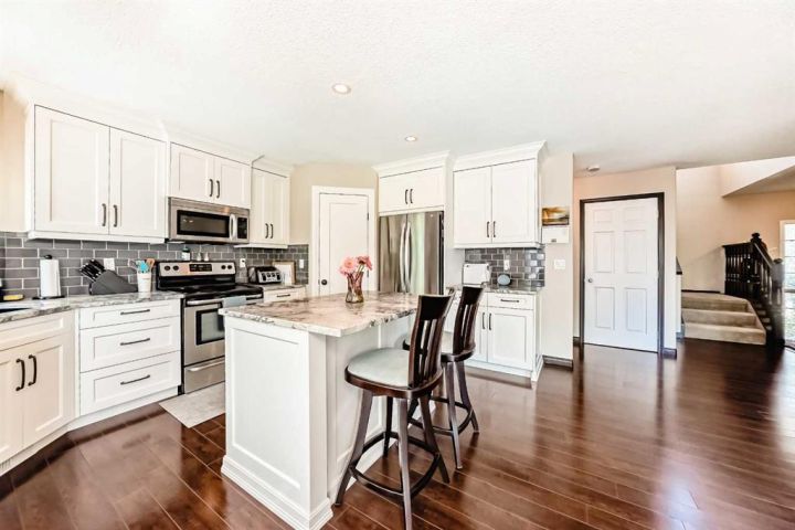 Could this be the home you’ve been waiting for? Pride of ownership shines throughout this beautifully maintained 1,625 sq. ft. two-storey home with a fully developed basement—offering plenty of space for the whole family. Step into a spacious front entry that leads to a custom-built kitchen, thoughtfully upgraded with quartz countertops, soft-close cabinetry, a centre island, and a corner pantry. The bright and open dining nook features a glass door that opens onto a professionally landscaped, private backyard—a true retreat with mature trees and a stunning two-tiered deck, perfect for relaxing or entertaining. The main floor showcases rich hardwood flooring, a cozy living room with a corner gas fireplace, and a separate mudroom/laundry area that provides direct access to the double attached garage. Upstairs, you’ll find a sun-soaked primary suite complete with a walk-in closet and a luxurious 5-piece ensuite. Two additional spacious bedrooms and a full bathroom complete the upper level. The fully finished basement offers even more living space with a large family room, a fourth bedroom, and another full bathroom—ideal for guests, teens, or a home office. Additional features include central air conditioning for year-round comfort and thoughtful upgrades throughout. Don’t miss your chance to own this move-in ready home that checks all the boxes!