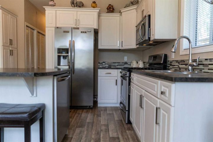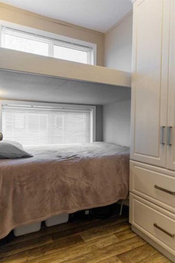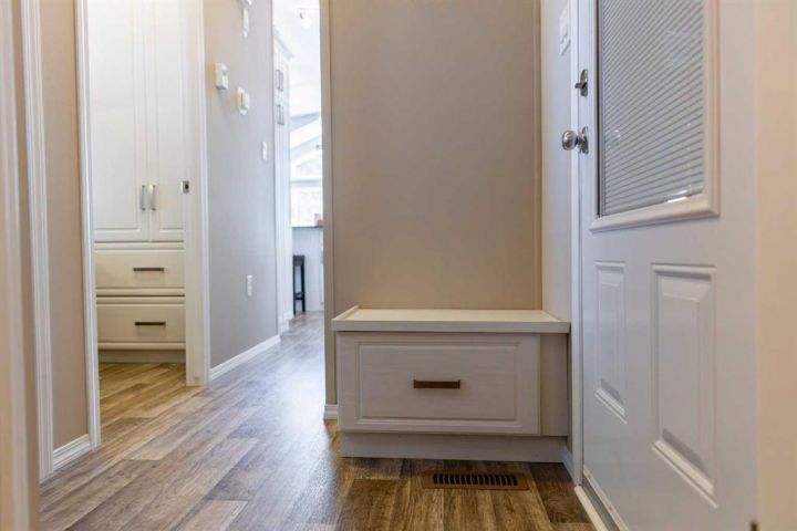 Affordable Family Retreat! Gull Lake, Parkland Beach, Marina, Community Events, Playgrounds, Nature Trails, Fishing, Swimming - all within steps of your summer home! Rain or shine, this is where relaxation starts. The newly finished (2021) tin roof deck is where rustic comfort and low maintenance charm meet. Through the beautiful side barn door, get cozy around the campfire. The gazebo and powered shed with lights make it easy to entertain with food and drinks. Follow the landscaped rock work around back for shaded privacy or use as additional storage. Inside, the tall ceilings and ample natural sunlight transform the ambiance to a luxurious nautical feel. Well built for all weather; 6” walls and air conditioning are sure to keep you cool on those hot summer days. The low maintenance charm continues with fingerprint proof stainless steel package featuring gas stove and dishwasher. Down the spacious hall, find the washer, dryer and more storage. The first bedroom features a great sized bunk bed and large soft close closet. The primary bedroom takes advantage of built in storage features as well. Coming off the lake is a breeze as the park model’s back door is closest to the full 4 piece bathroom with tub/shower combo and tiled backsplash. Easily accommodating a crew of 6, start planning your summer adventures today!