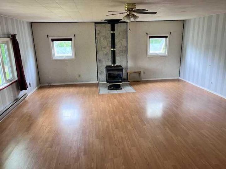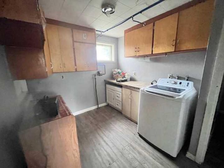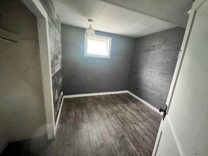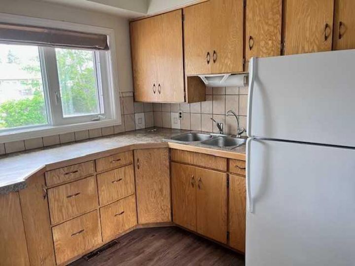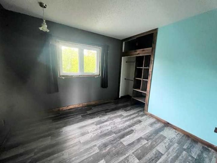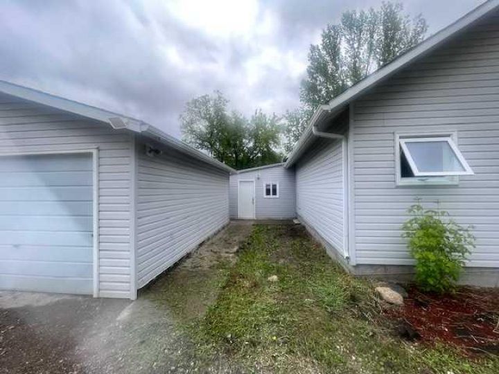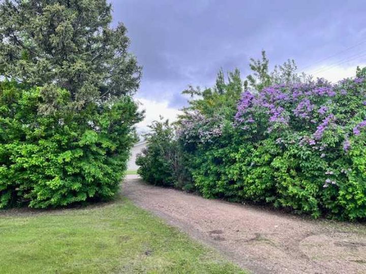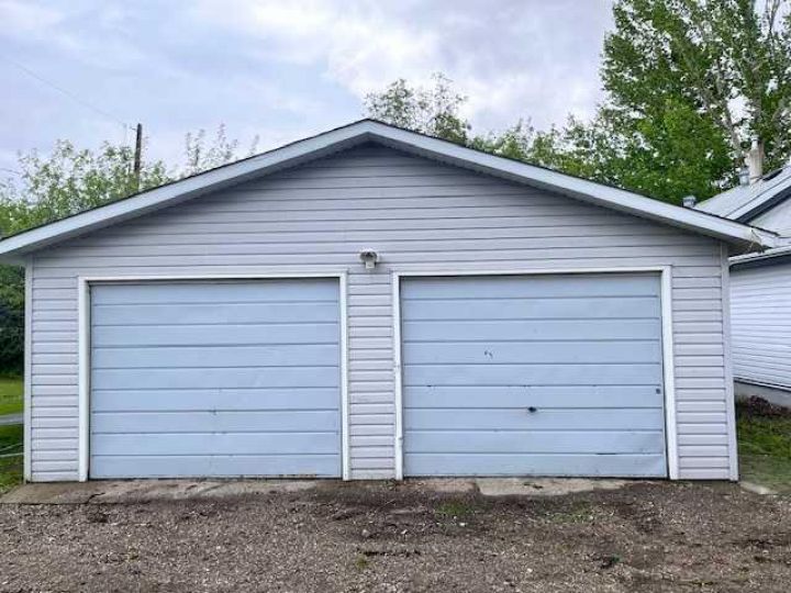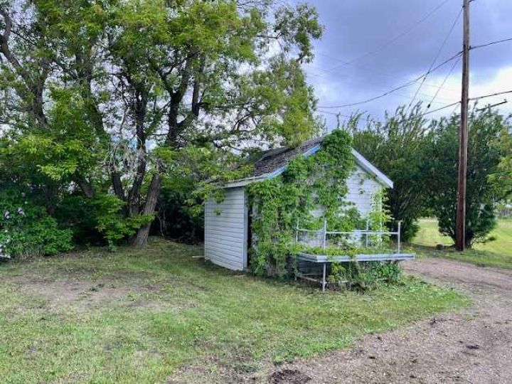 Cute bungalow in the town of Neilburg, this home features a large family room with a gas stove, there are 2 bedrooms up and 2 bedrooms down with 2 bathrooms There is a double detached garage on a big lot with mature trees and lots of lilac bushes lining the driveway. Shed in the yard