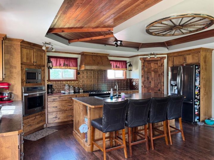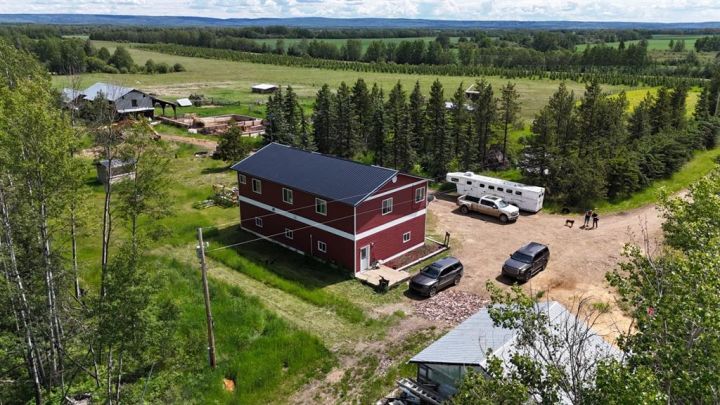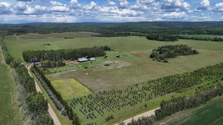 Rare Opportunity – 160 Acre Turnkey Farm Property with Home, Hay, Tree Nursery & More! Welcome to this exceptional 160-acre farm, perfectly set up for a thriving agricultural or ranching operation with all the comforts of country living. This well-rounded property features 120 acres of productive hay land and an additional 25 acres home to a lucrative tree nursery, boasting over 2,000 mature blue spruce trees (4–8 feet tall) planted in 2012—ready for harvest and profit. Fully fenced and cross-fenced, the land is ideal for horses or cattle and includes six dugouts to ensure ample water supply year-round. The 24x48 barn is ready for livestock with seven stalls, a heated tack room, calving room, and a rolling mill to process your own feed. Three additional horse shelters complete the setup. At the heart of the property sits a stunning 2,946 sq ft home built in 2018. This spacious residence offers 6 bedrooms, 3 bathrooms, 2 inviting living rooms, and a custom kitchen with a massive island, perfect for hosting and everyday living. The home features 10’ ceilings on the main floor, a heated attached garage, laundry on both levels, a wet bar, and a luxurious master ensuite with a jetted tub. Outside, you’ll find a collection of useful outbuildings including multiple sheds, an older garage, a chicken coop, and a greenhouse. A beautifully treed area with mature spruce includes scenic trails and a private campground—perfect for peaceful getaways or guest enjoyment. Whether you’re expanding your farming operation or looking for a self-sustaining lifestyle in a serene setting, this property offers incredible value and versatility. Don’t miss your chance to own this private, income-producing oasis!
