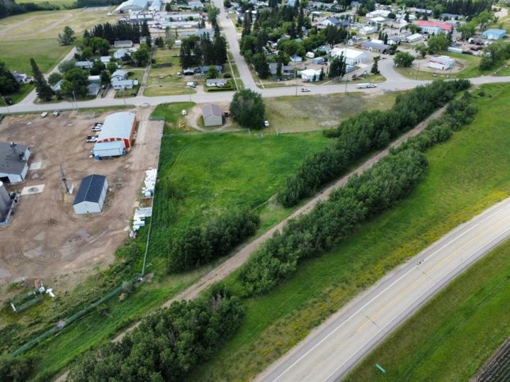 Commercial lot in Marwayne , Alberta. This 1.58 acre parcel sits just east of railway ave and 2nd street south. This triangle piece of land is fenced on two sides and backs on to the old track line. This would make a great storage yard.