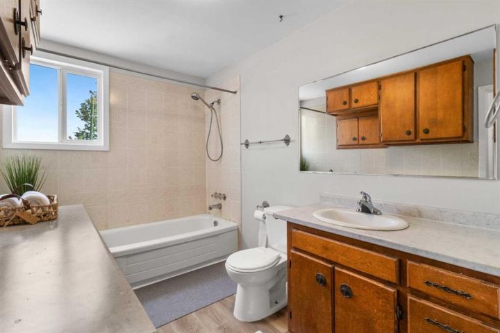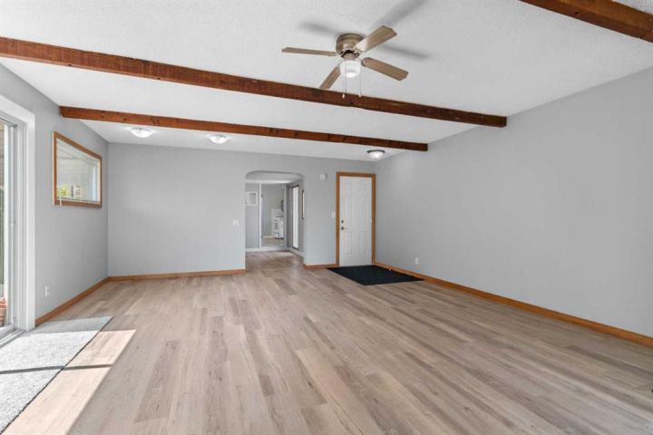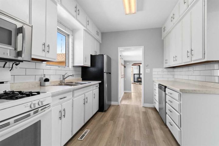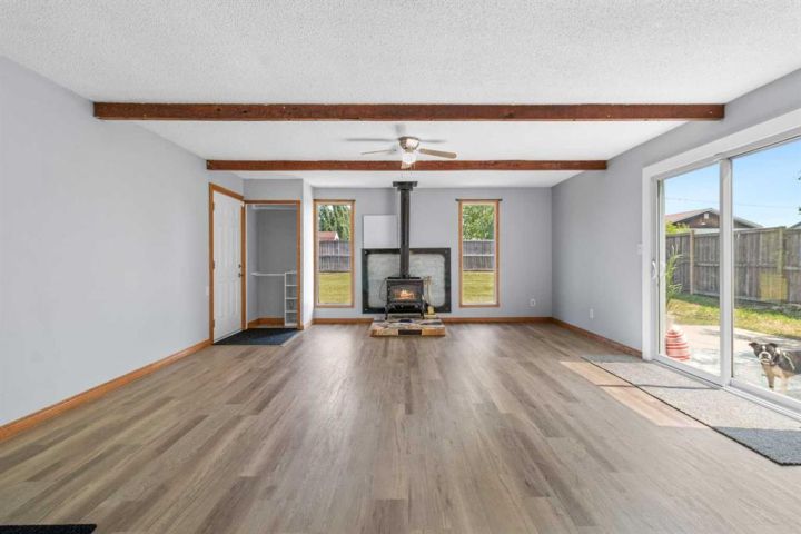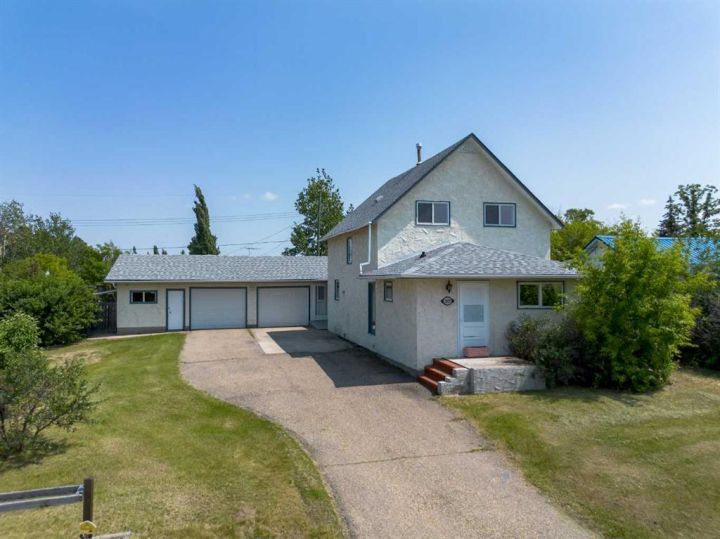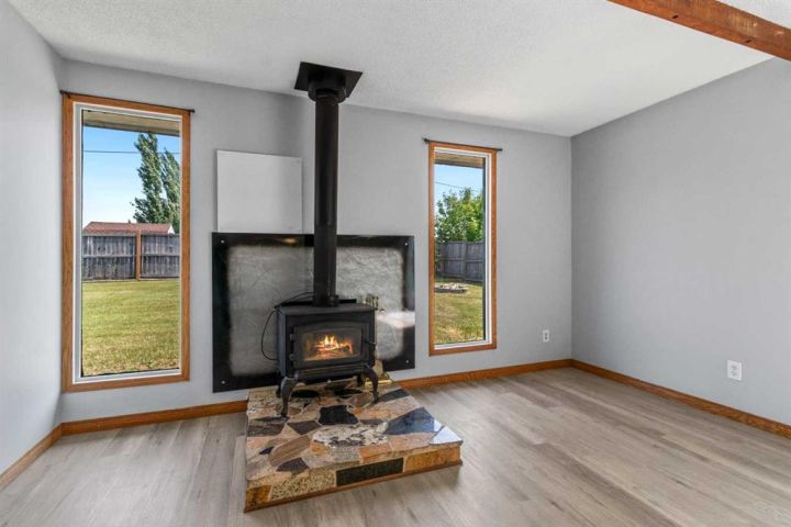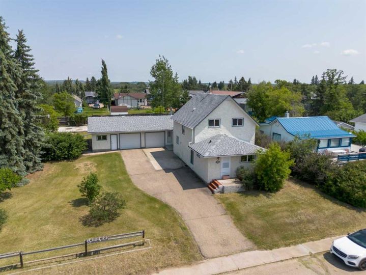Spacious Hilltop Home on Double Lot – Delburne, AB Discover this beautifully updated 4-bedroom, 2-bathroom home perched on a hill in the peaceful community of Delburne. Offering over 2,000 sq ft of living space, this home combines modern comfort with small-town charm, all set on a generous double lot with a fully fenced backyard. Key Features: 4 Bedrooms 2 Full 4-Piece Bathrooms Oversized Garage with inside access Cozy Wood-Burning Stove in the large family room Renovated Galley-Style Kitchen with built-in appliances and plenty of cabinetry Bright Dining and Living Area with large windows and natural light Basement Rec Room and Utility Room Ground-Level Deck and walk-out access to backyard Huge Fenced Backyard with firepit and cement pad (ideal for a future shop) Recent Updates Include: New Refrigerator (with previous one moved to the garage) New Flooring & Carpet Fresh Interior Paint Roof Shingles Replaced in 2013 The main floor includes a cozy bedroom and full bath, perfect for guests or single-level living. Upstairs you’ll find the primary bedroom, another full bath, and an additional bedroom with walk-in closet and ample storage. The basement provides even more space with another bedroom, a rec room, and utility area. Set in a quiet, family-friendly neighborhood, you're close to schools, parks, and local amenities. Delburne has K-12 school, hockey, curling, golf, playschool, and lots of good neighbours.