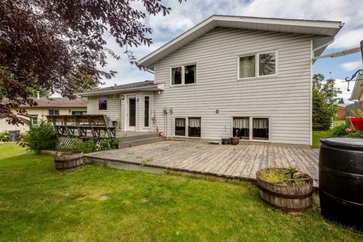Here is an outstanding family home in a very quiet area of Rimbey! Featuring 5 bedrooms plus a den/office and 3 bathrooms, this 4-level split has tons of room for the whole family! A nice size double attached garage also compliments this home and recent upgrades include a beautiful, bright kitchen with granite countertops, updated appliance, updated plumbing, updated shingles and features a gas fireplace on lower level for extra warmth on chilly days. There is a large deck off the back kitchen area facing South for a beautiful outdoor sitting space and barbeque area. This home is in a fantastic location with a park nearby, school and aquaplex within walking distance and makes a wonderful family home!