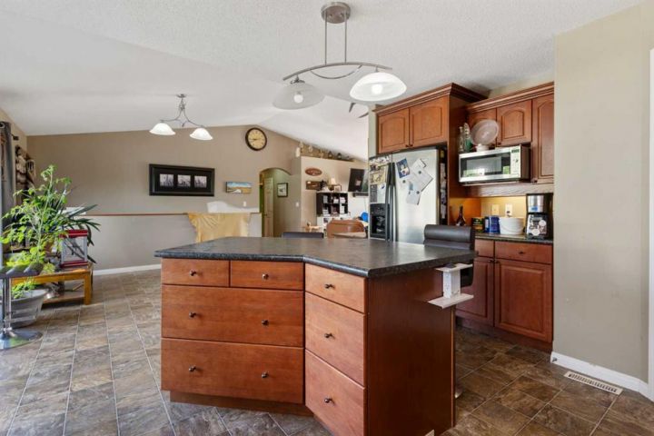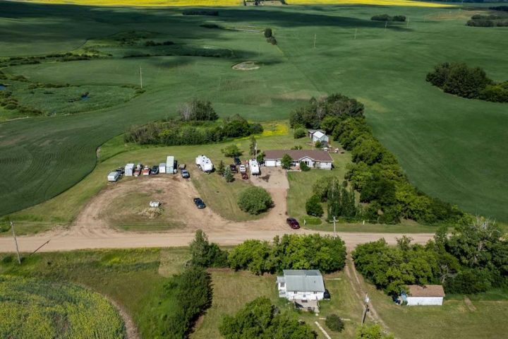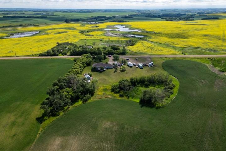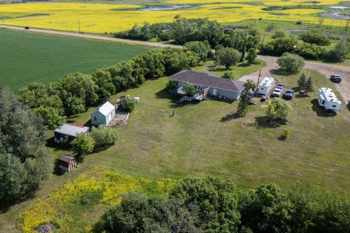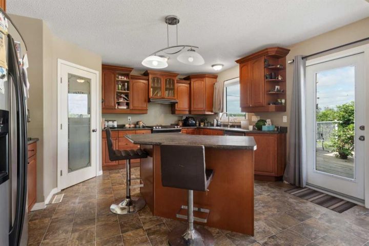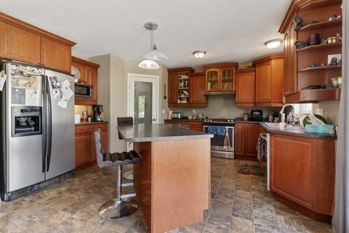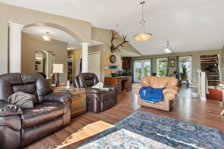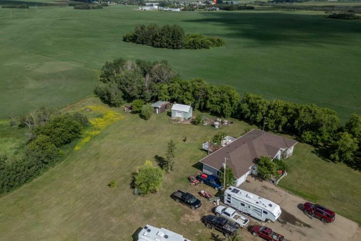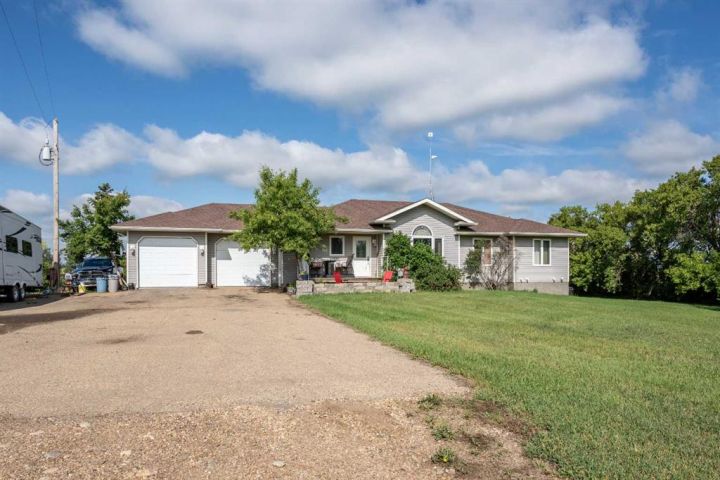 Welcome to your private country retreat! This beautiful 2005 walkout Ready-To-Move (RTM) home offers the perfect blend of rural tranquility and modern comfort, nestled on a sprawling 10.01 acre parcel. Property Highlights: 5 spacious bedrooms, 3 bathrooms, walkout basement with stunning views and natural light, open concept main floor with vaulted ceilings and large windows, bright kitchen with ample cabinetry, island seating, and adjacent dining area, cozy living room perfect for family gatherings, main floor laundry for added convenience, partially finished basement with large rec room, 9 foot ceilings, additional bedrooms, and full bath, central air for those hot summer days and 10.01 acres of gently rolling land—ideal for hobby farming, recreation, or simply enjoying the peace and quiet. Plenty of space for a shop or outbuildings with room to roam for pets, livestock, or kids with big imaginations. Whether you're looking to escape the city, start a hobby farm, or just enjoy wide-open spaces, this property offers endless potential. With a solid RTM build and walkout design, it's a rare find in a serene setting. Located just minutes from Lougheed, with easy access to amenities while still enjoying the privacy of country living.
