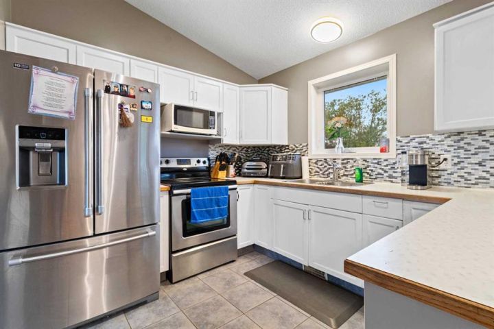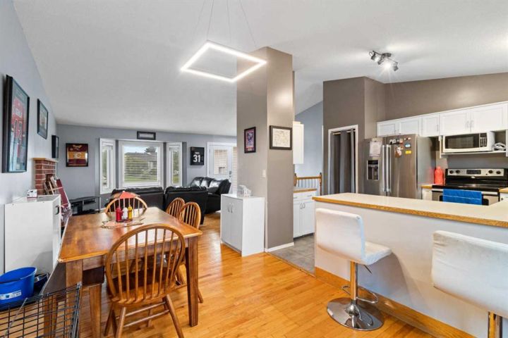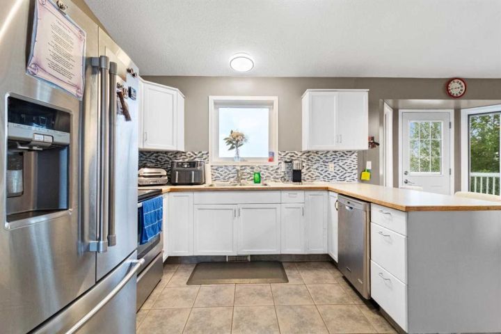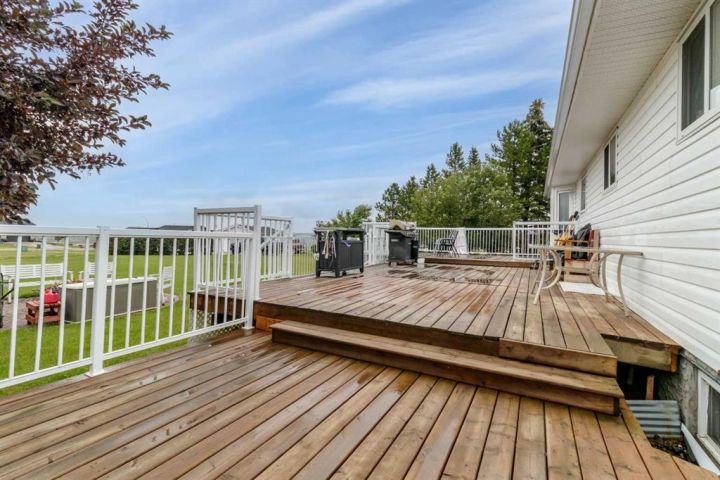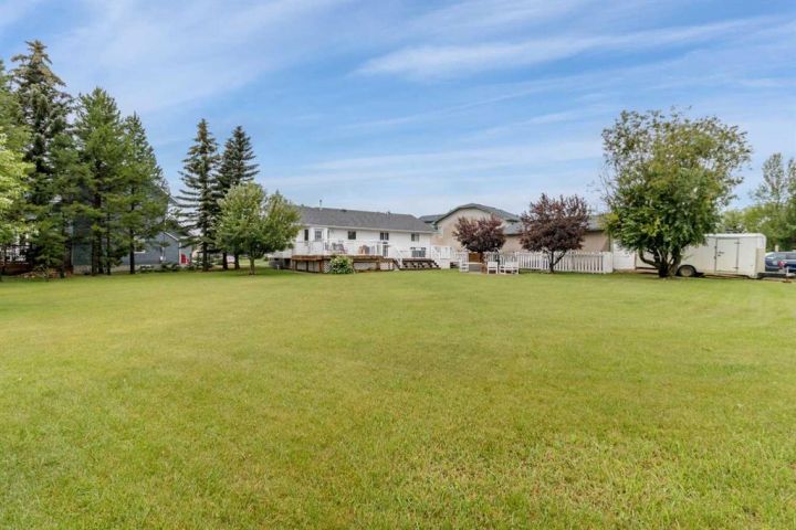 NEW PRICE CHECK OUT THE UPGRADES!! This stunning 3-bedroom, 3-bathroom residence with numerous upgrades is the perfect blend of comfort and space, ideal for growing families or those who love to entertain. With generous living areas and an abundance of natural light, this home invites you to create lasting memories with loved ones. Upgrades include the basement rec room space with new carpet and upgrades in the main floor bathroom, along with New Furnace/AC/garage furnace in Sept 2023 which was near $20,k of upgrades. The roof and kitchen window was done in 2015, and the rest of the windows and doors were done in 2021 with the soffit, eavestroughs etc done in 2020. Step outside to discover your own private oasis—a huge yard with a large back deck that is approximately 600 sqft of deck, and open space that offers endless possibilities for outdoor activities, gardening, or simply enjoying the serene surroundings. The property features both an attached garage that is heated and insulated and an approximately 16x24 cold storage detached garage, providing ample storage space for your vehicles, tools, and recreational equipment. Living in Rimbey means embracing a tight-knit community with a welcoming atmosphere. Enjoy the benefits of small-town living while being just a short drive from larger cities for additional amenities and services. Rimbey offers many amenities including a hospital, excellent schools, parks, and recreational facilities, making it a fantastic place for families. Explore the nearby beautiful landscapes, and close to lakes and trails, perfect for outdoor enthusiasts. Don’t miss this opportunity to own a beautiful home in a vibrant community. Start imagining your life in this idyllic affordable setting! Updates in the last couple of years- New House Furnace, New Garage Furnace, New AC, New sink and faucets in wet bar