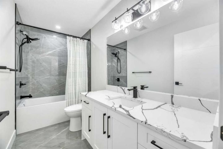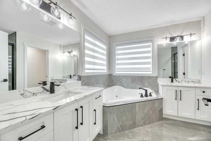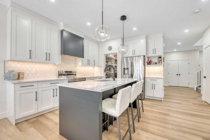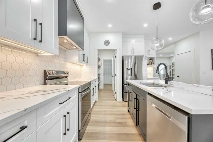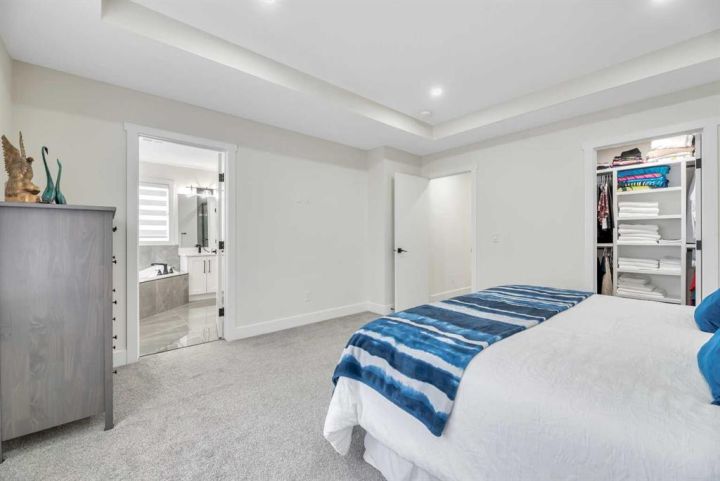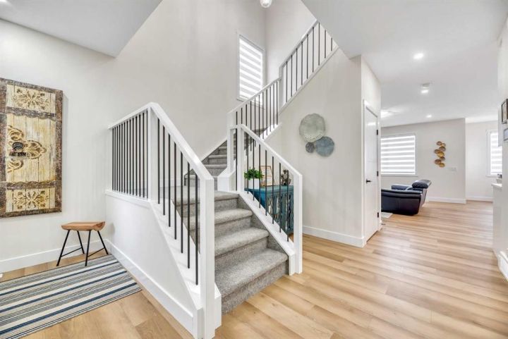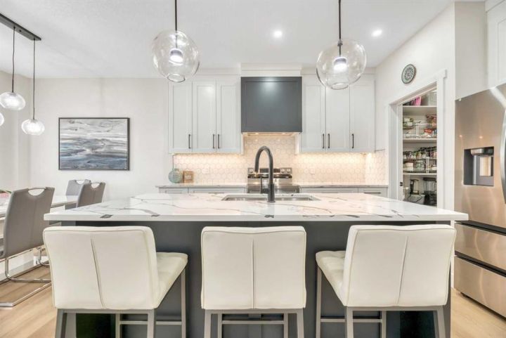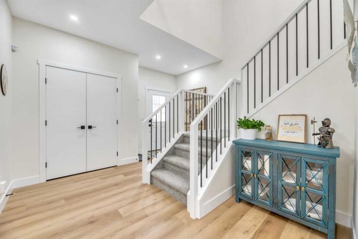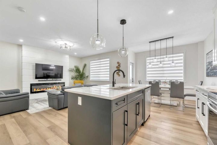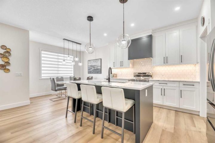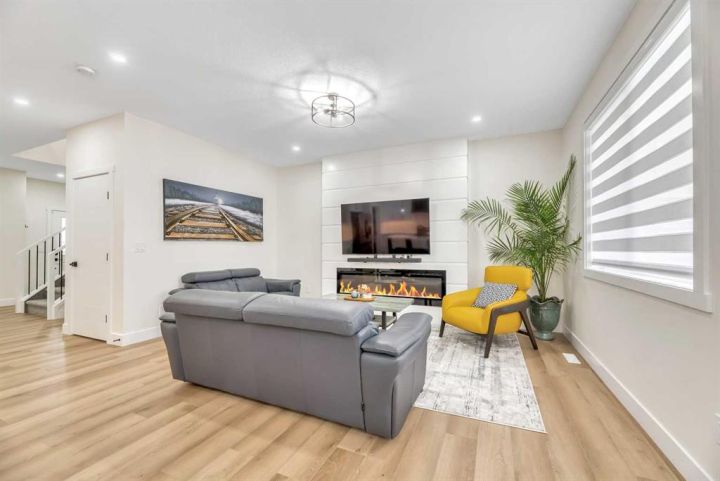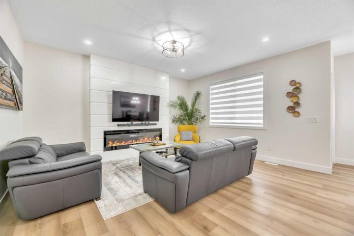 The moment you walk in, this home makes an impression. The entry is wide, bright, and open—welcoming without trying too hard. It flows into a layout that just works—thoughtful, functional, and designed for real life. With 9' ceilings, it's open and built for real life. Off the mudroom, a walk-through pantry with modern wood shelving leads you into a kitchen that shows up for everything: quartz counters, ceiling-height cabinets, LED under-cabinet lighting, and a massive island that anchors the space. Stainless steel appliances, including a range that is electric for now, but has an optional gas hookup if that's your cooking preference. Don't forget the gas hookup on the deck which mean you’re ready for anything from weeknight dinners to weekend BBQs. Upstairs, it only gets better. Wide stairs and metal spindles lead to a bonus room filled with natural light. It’s wired for physical network connections and backed by true fibre gigabit internet—perfect for streaming, gaming, and working from home without missing a beat. The primary suite is a true retreat, with an oversized bedroom, walk-in closet with wood shelving, dual sinks, and a jetted tub built for two. Two additional bedrooms, a full bath, and a proper laundry room with sink and cabinetry round out the upper level. Throughout the home, you’ll find premium blinds—including motorized systems in the primary, kitchen, and living room, and blackout blinds in the bonus room where it counts. The basement is wide open with high ceilings, a rough-in for a full bath, and a separate entrance. And with R2 zoning, you’ve got real flexibility to develop whether it's for your family or an investment. The home also includes a large 2-car attached garage which is perfect to keep your vehicles safe from those Alberta storms. The extras? Every window and door is alarmed. Carbon monoxide and flood detection are built right in. Did we mention this home has AIR CONDITIONING??? Great for those hot summer days Or keep it nice and warm in the winter using your high-efficiency furnace. All controlled by your smart thermostat. And let’s not forget location—this home is steps from a K–9 school and just a 2-minute drive to the grocery store. Everything you need is right here. This is a home built with intention, lived in with care, and ready for what’s next. But here’s the thing—you won’t feel it through a screen. Book the showing. You’ll know it when you see it.