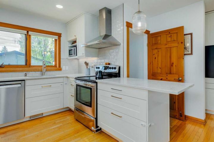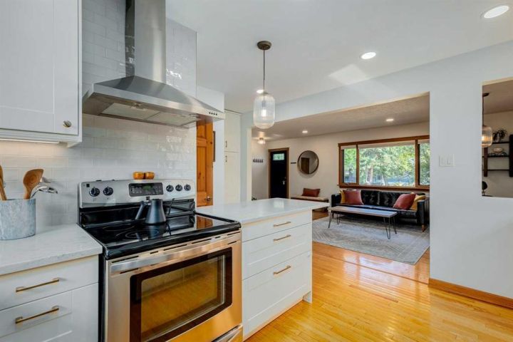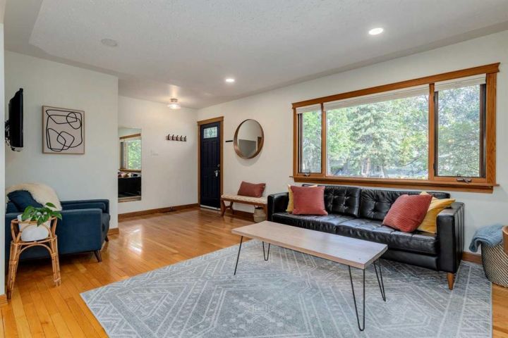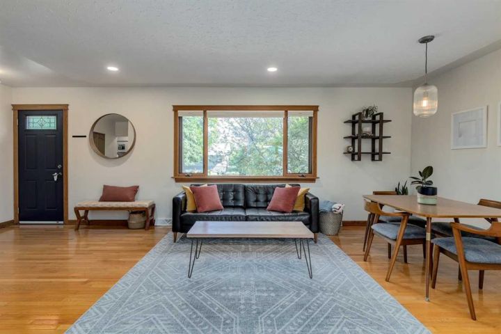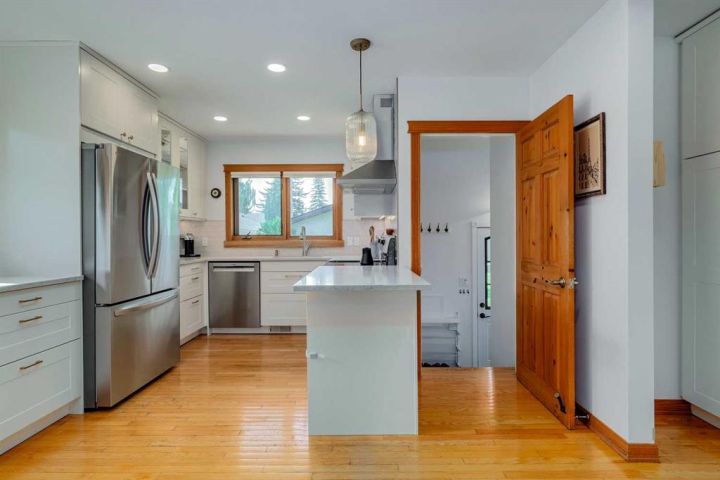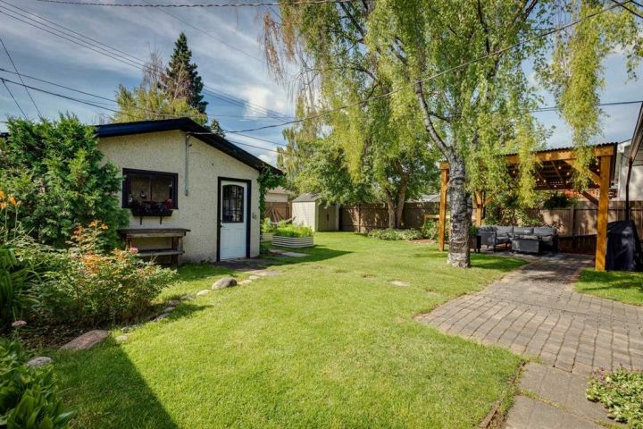 An Urban Oasis in Southwood. Discover a beautifully updated bungalow in the established community of Southwood, offering over 1,800 sq ft of thoughtfully developed living space. The main level features warm hardwood floors and an open-concept living and dining room that flows into the tastefully updated kitchen, complete with sleek quartz countertops, crisp white cabinetry, and a suite of stainless steel appliances. Two main-floor bedrooms and a four-piece bath, along with a private primary bedroom with a three-piece ensuite and soaker tub, provide peaceful retreats. The versatile lower level includes a large recreation room, a third bedroom (ideal for a home office), a three-piece bath, and dedicated laundry and storage. Enjoy a sunny south-facing backyard with a newly installed covered pergola and a single detached garage. This home has been meticulously maintained, with key recent updates including a new sewer line (2021), a newer furnace, hot water tank, and new roof (2024). Located close to parks, schools, and shopping, with easy access to the downtown core, this is a home that offers comfort and convenience.