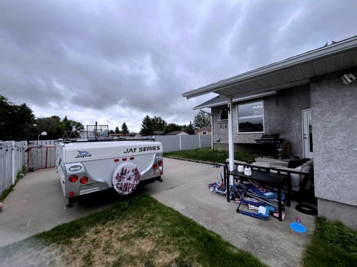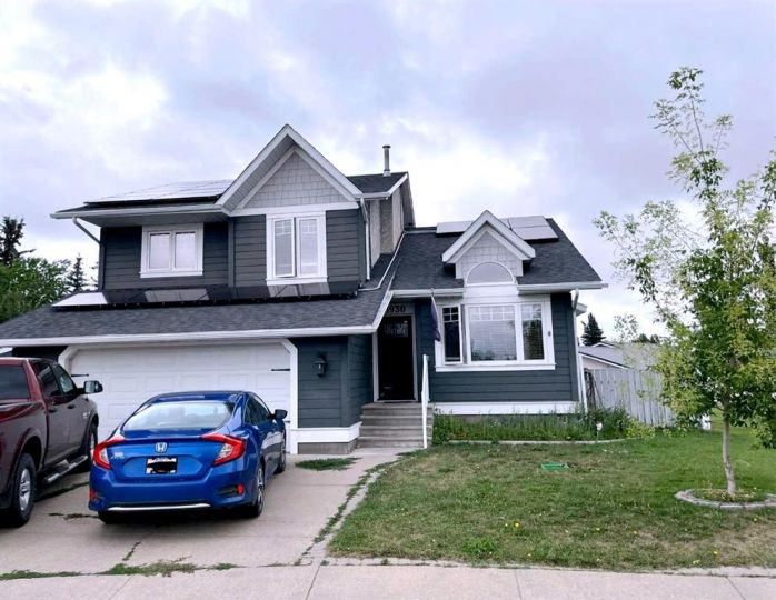 Beautiful spacious family friendly home in a quiet cul de sac ! Fully landscaped heritage style home that borders greenspace and a park which is a huge bonus for the family ...Extra space you don't have to maintain ! 6 bed 3 bath home, has tons of space for everyone, spacious kitchen with vaulted ceilings, pantry and eat up island, and continues down to the large family living room/games area/dining area...This space can go so many ways. Tons of natural light, and a gas fireplace for winter home time. 3 spacious bedrooms upstairs including the Main Bedroom which also has an en-suite for convenience. The basement is complete with another two bedrooms, and one having their own en-suite, so a nice space for visiting family, or an older child to have their own space. as a bonus there is tons of room for cold storage and just storage itself throughout the home. The home also has $31,000 worth of solar panels which contributes to lower energy costs. Attached double garage, and backyard has a garden area, firepit area, as well as a covered (roofed in) area for those family gatherings, and as an extra bonus...The side fence has double gates and a concrete pad to store an RV if needed, or a basketball court, or pool...The possibilities are endless ~