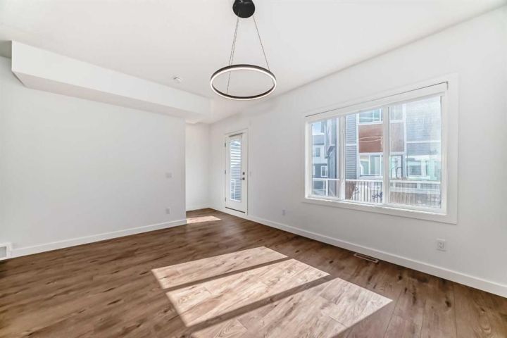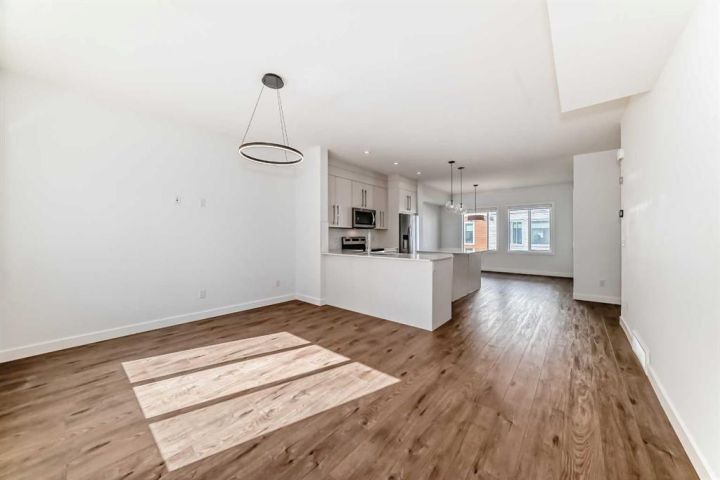 Ready to move-in/ 3-storey townhouse/ 3+1 bedrooms/ Double Garage attached/ Low maintenance fee. Welcome to this townhouse in Pine Creek, a development that offers a unique opportunity to own at a very competitive price and be part of Southwest in Calgary. Double garage attached on main level offers the ultimate convenience of direct access to your home. Right from the main level you get a full bedroom that could be used as the office. The second level comes with an open concept living with a kitchen tucked in the center to offer the needed separation for a living and dining area. The kitchen is a culinary delight, offering quartz countertops, stainless steel appliances, full-height cabinetry, a timeless tile backsplash, and a center island with an eating bar. This level also offers a sizable balcony equipped with BBQ gas line. The primary suite serves as a private retreat with a high ceiling, oversized window, spacious walk-in closet, and luxurious ensuite. Two additional bright bedrooms share a modern 4-piece main bathroom, while laundry facilities on the upper level add further convenience. Come and settle in the growing community of Pine Creek, short drive to grocery stores, shops, restuants, and other amenities anyone could need at Silverado shopping Center. Your life is convenient in Pine Creek with easy travel near and far through quick access to Calgary’s Ring Road and Macleod Trail, plus the Somerset / Bridlewood LRT station. Contact us today to schedule a viewing and experience the best of Pine Creek living.