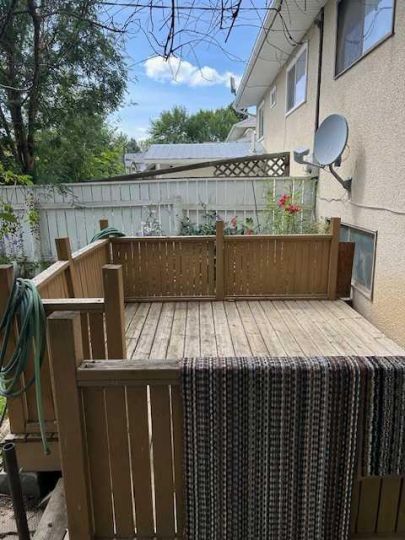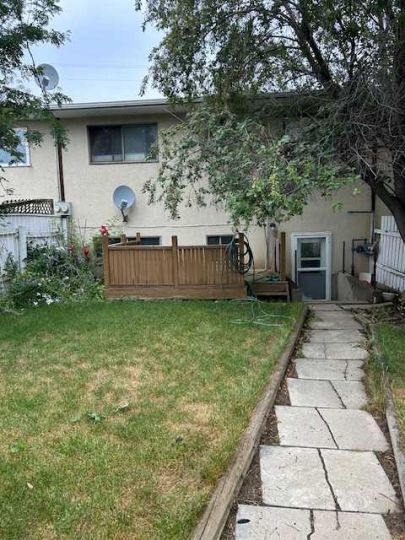 3 bedroom 1 1/2 bathroom townhouse with single detached garage. Home has a large living room with great open field view to the north. Basement entry to back yard that has nice deck to hang out on, single detached garage and extra rear parking. Bring a paint brush and make it your own!