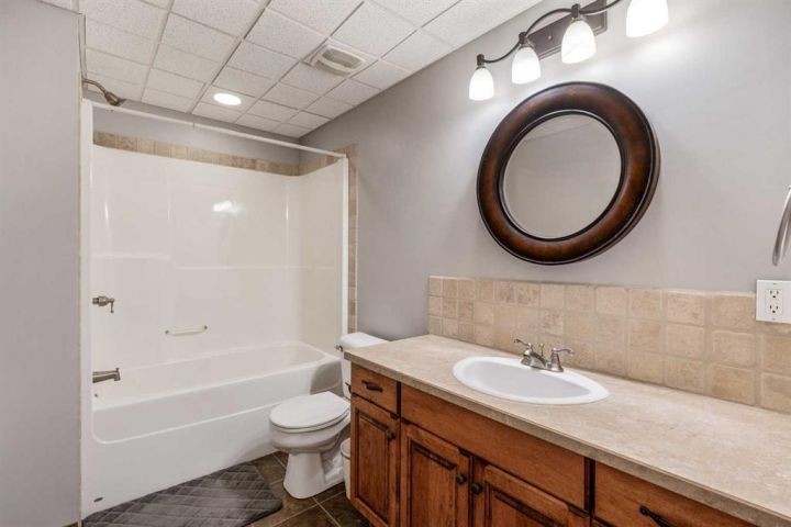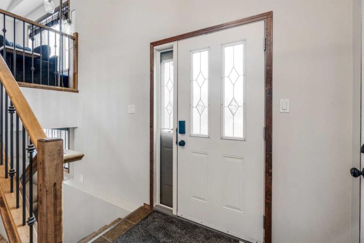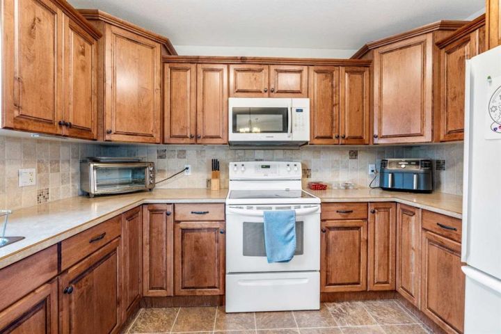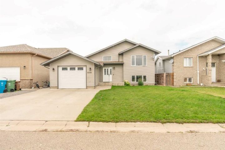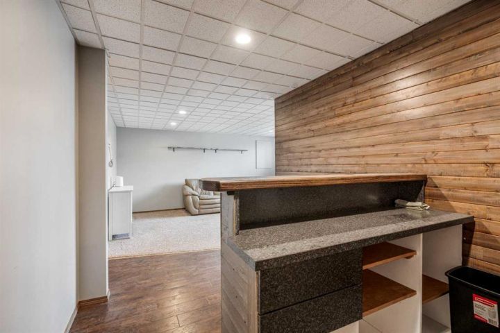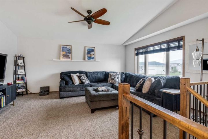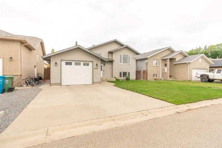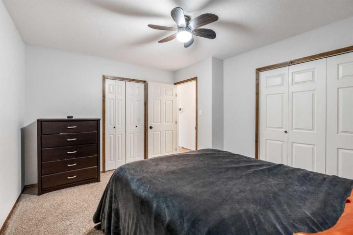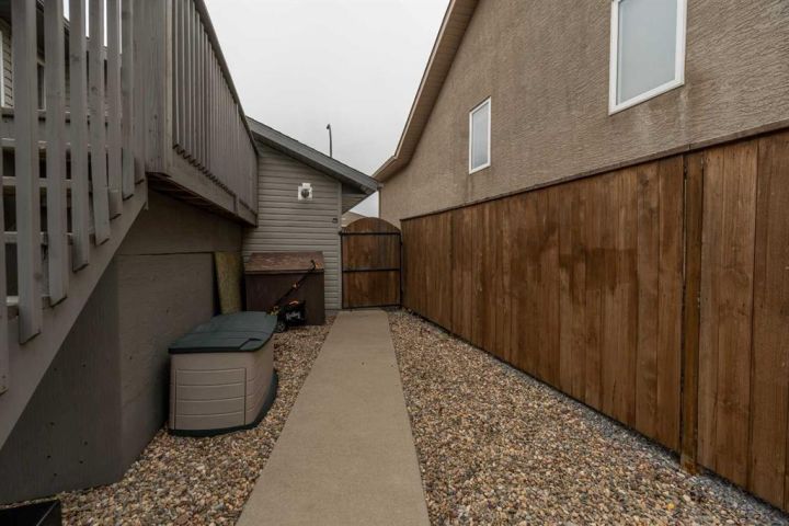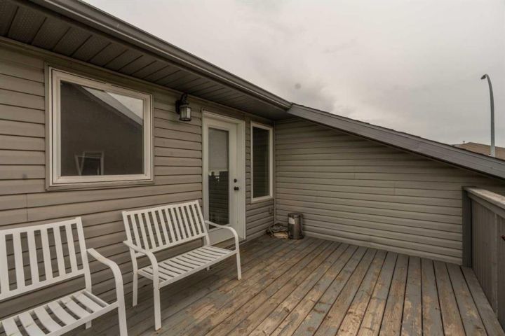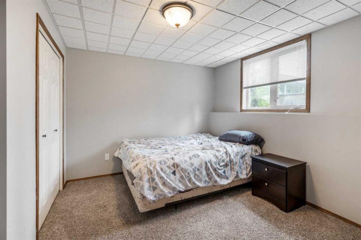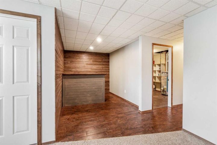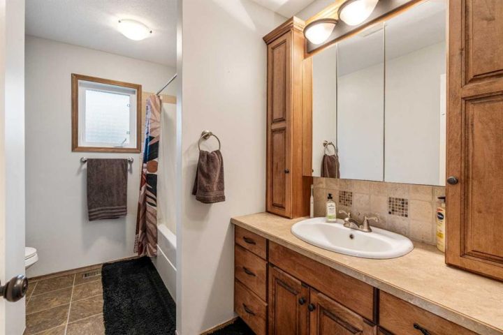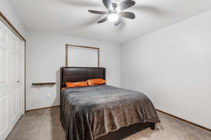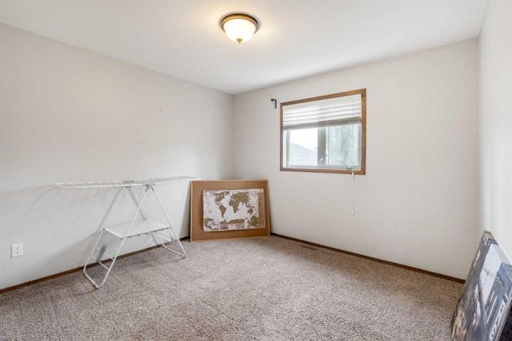 The bright main level welcomes you with a spacious living room featuring vaulted ceilings, , and large windows that flood the space with natural light. The kitchen is equipped with solid wood cabinets. Enjoy meals in the cozy dining area or step onto the deck off the south side for summer BBQs. There are two bedrooms upstairs, the primary has double closets for ample storage, the main floor also has a 4-piece bathroom with built-in linen storage. The basement offers two additional bedrooms with closet organizers, a large family room. and a bar area with a feature wall making it perfect for entertaining. Other highlights include nice blinds throughout, 8-foot ceilings, and real wood trim. This move-in-ready home offers exceptional value in a fantastic location — perfect for families looking for space, comfort, and proximity to a great school. Don’t miss your chance to make this wonderful property your next home!
