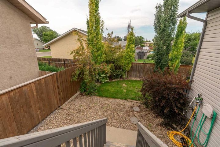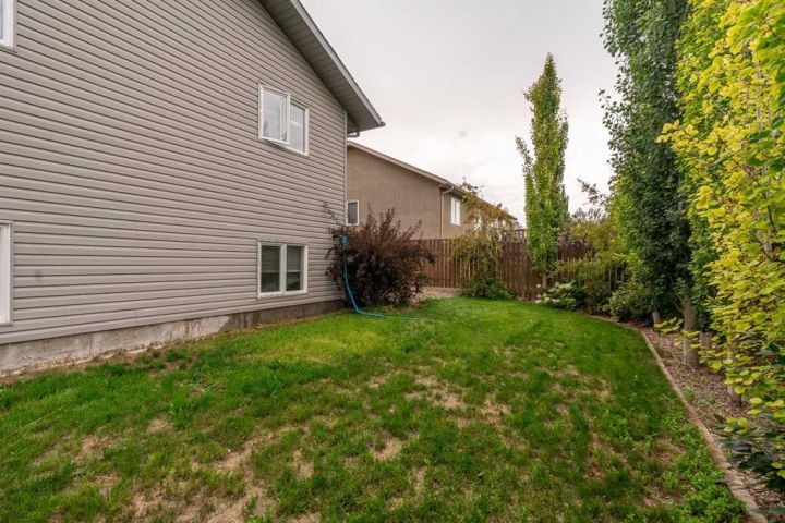 Step outside to enjoy the fully landscaped and fully fenced yard, a double concrete driveway, and a heated single attached garage. The home boasts maintenance-free vinyl siding, a newer asphalt shingle roof, underground front and back sprinklers, and central air conditioning for year-round comfort. Conveniently located near a park and amenities.