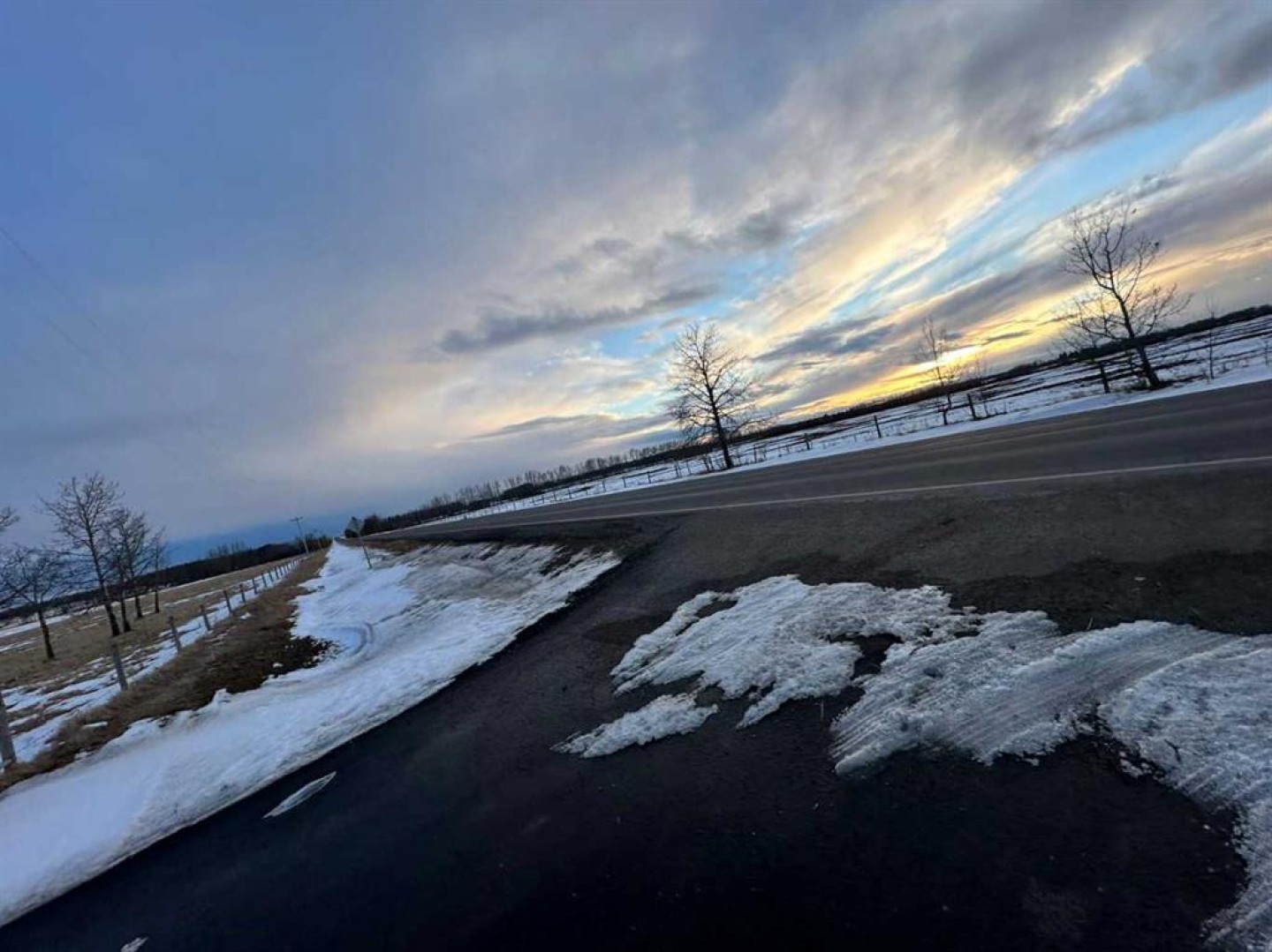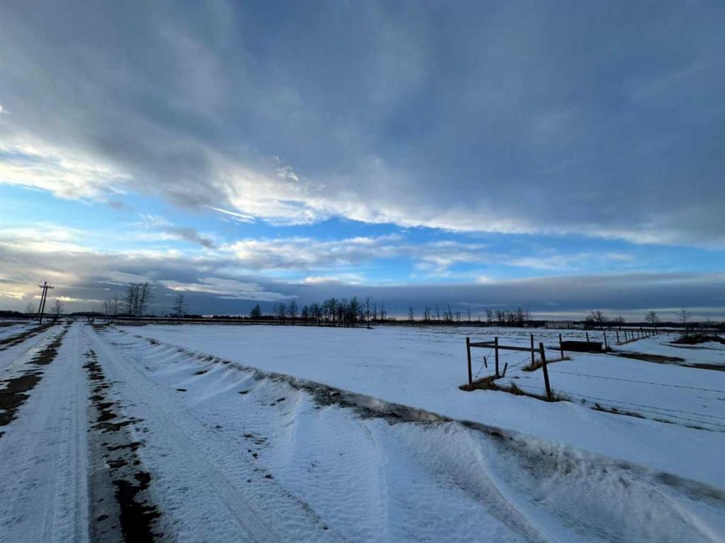 Located along Highway 11 with excellent visibility, this 154-acre mixed farming property offers significant future commercial development potential. The land features a combination of open fields and mature trees, along with a single-wide mobile home and an additional serviced site. A large, newer metal shop is also on the property, divided into two sections: the east side measures 24x40 with a 14 ft high by 19.6 ft wide overhead door, while the west side is 36x40 with a 12 ft high by 11.6 ft wide door. The shop includes cement floors, 220 power, and a 2-piece bathroom. This property also generates solid annual income with \$7,000 from oil revenue, \$5000 from a land lease, and \$2000 from a gas lease. A rare opportunity in a prime location with strong investment potential.
