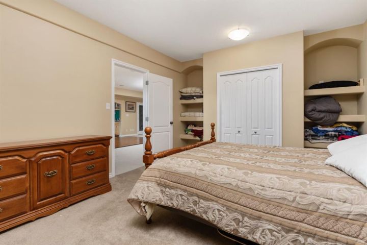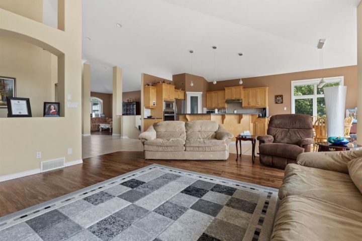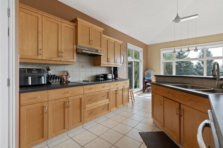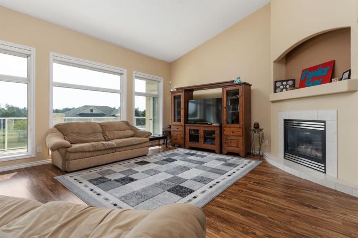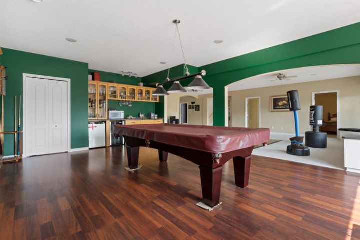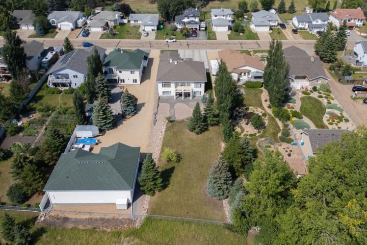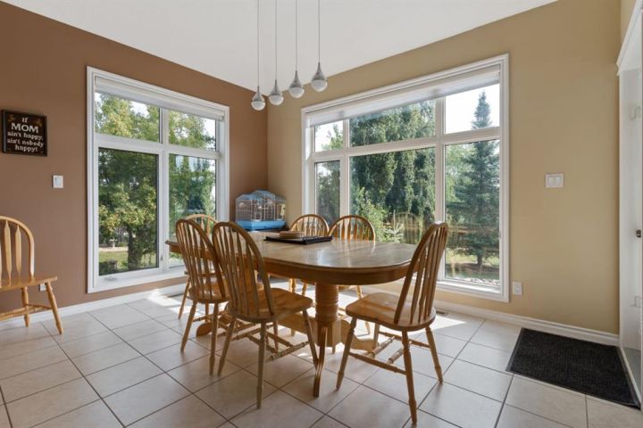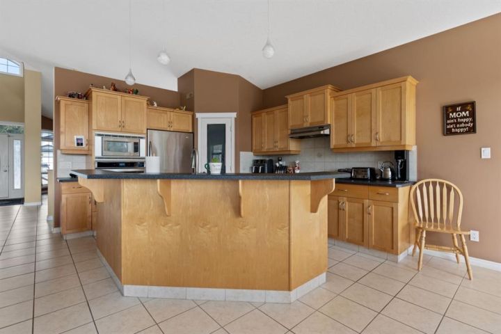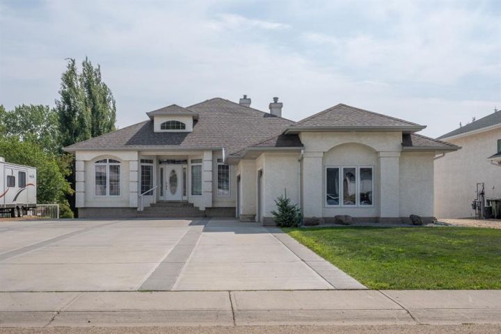A Truly Remarkable Property! Over 2300sqft plus a finished basement sitting on .42 of an acre and backing a reserve area - Wow! Custom Built - One Owner Home - Triple Car Garage - Walkout Basement - updated Concrete Drive - 9ft/Vaulted ceilings and Gorgeous Views. This spacious home is a stunner from the very first moment with an oversized concrete drive and Triple Attached Garage. Step inside and take in the space with a large entryway that leads to a nice formal from living space. Wander to the back of the home and take in the open concept living area that sees a wonderful kitchen with maple cabinetry, tile floors and corner pantry; spacious living room with corner gas fireplace and a large dining area - all with big windows with views across the yard and beyond. Wonderful Primary bedroom keeps with the views and provides a beautiful 5pc ensuite with separate sinks, corner jet tub, sit down shower and a walk-in closet. The main floor also sees a 2nd bedroom, a converted dining room for a 3rd bedroom, 3pc bathroom and a dedicated laundry room with storage and wash sink. Walkout basement comes finished with three large living areas - a carpeted flex area, a laminated space with pool table and wet bar set up plus a dedicated media room for movie night. The basement sees an additional 4pc bath, cozy office, tons of storage and a 4th bedroom. Head outside and take in the soaring view - either from the private no maintenance raised deck or around the fire pit set amongst the hardscape and beautiful rock work. Balance of the lot gives tons of opportunity for additional structures and future family endeavours - think of the hockey rink you could set up out here! This incredible property is a great opportunity with so much potential!
