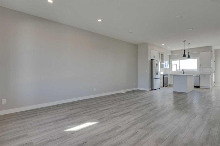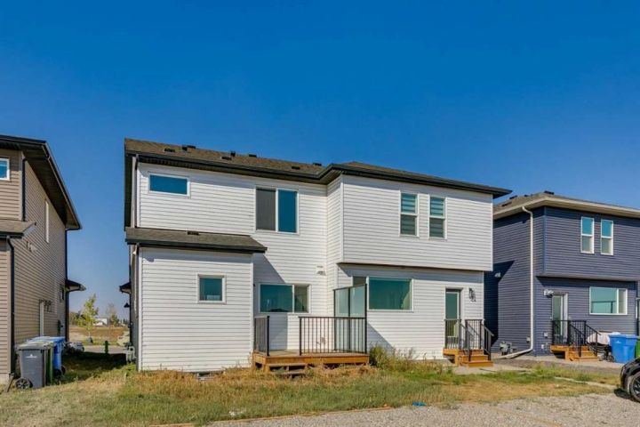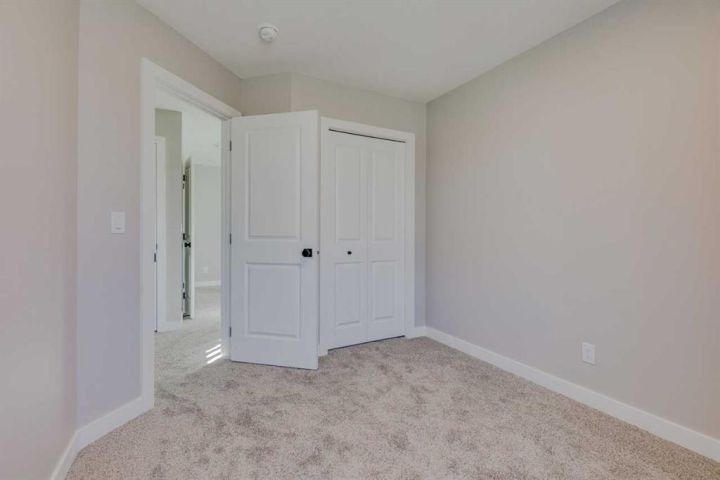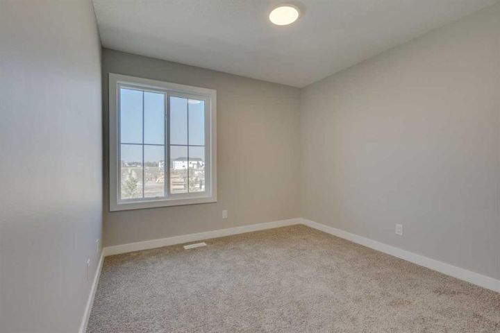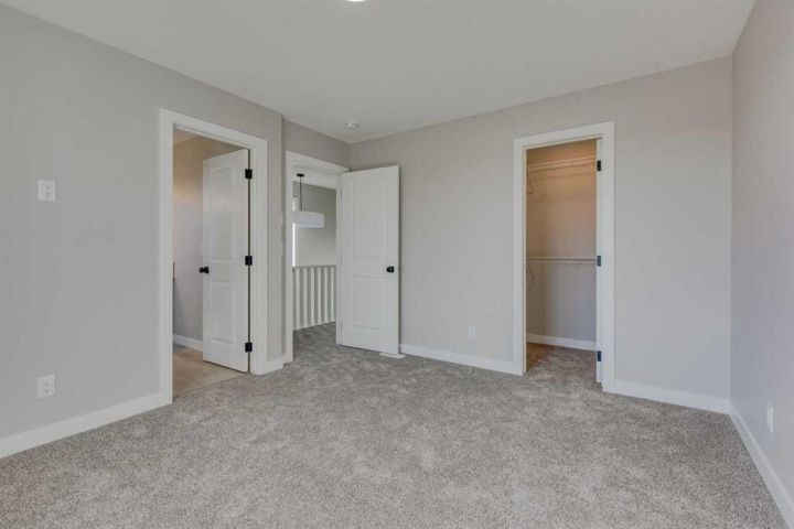 Discover the Eton, a move-in ready home in Chestermere with 1,490 sq ft of stylish living space. This craftsman-style home features Hardie board siding, black-framed windows, and an open-concept layout with luxury vinyl plank flooring. The rear-facing kitchen connects seamlessly to the backyard and includes Satin White cabinetry with black accents, quartz countertops, Samsung stainless steel appliances, a chimney hood fan, a large island, and a picture window above the granite sink. A functional back entry and walk-in pantry add convenience, while the front-facing great room is bright and inviting. Upstairs, the rear primary bedroom includes a dual-sink ensuite, complemented by upper-floor laundry and two additional bedrooms. Situated in Clearwater Park, one of Chestermere’s newest master-planned communities. Photos are representative.