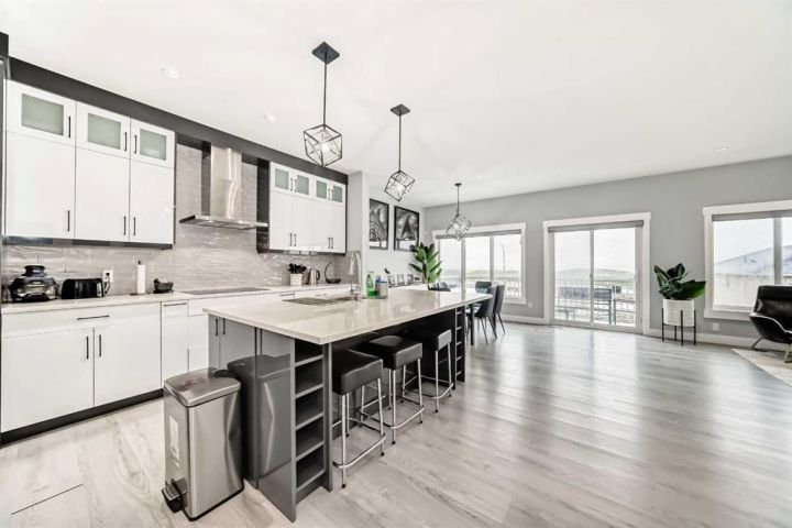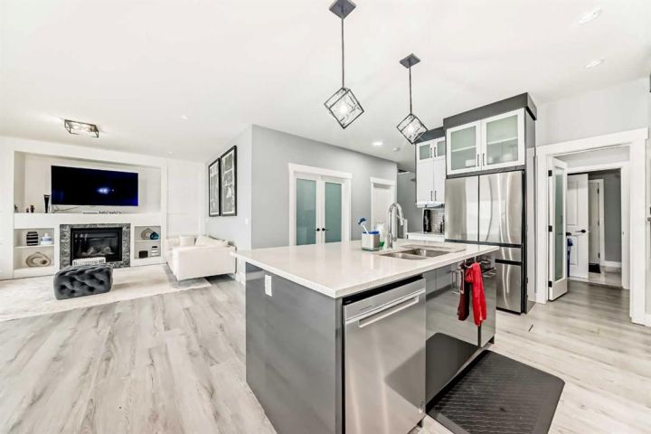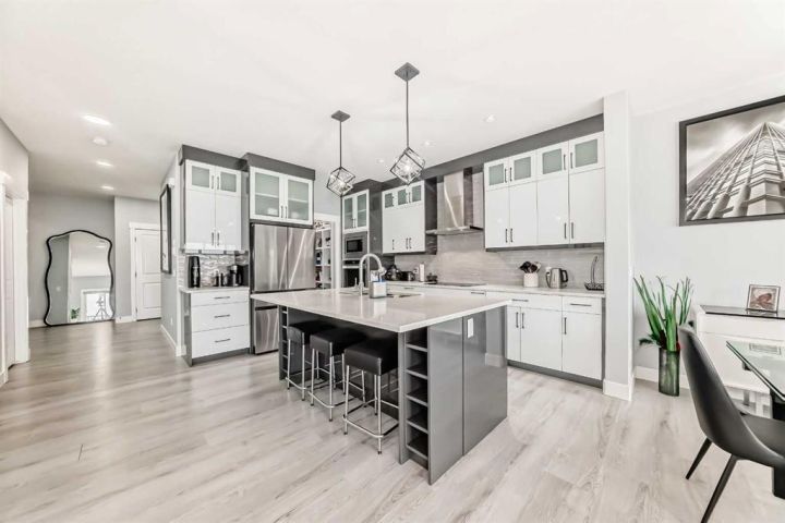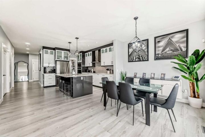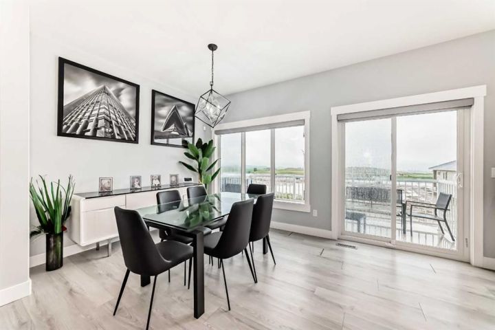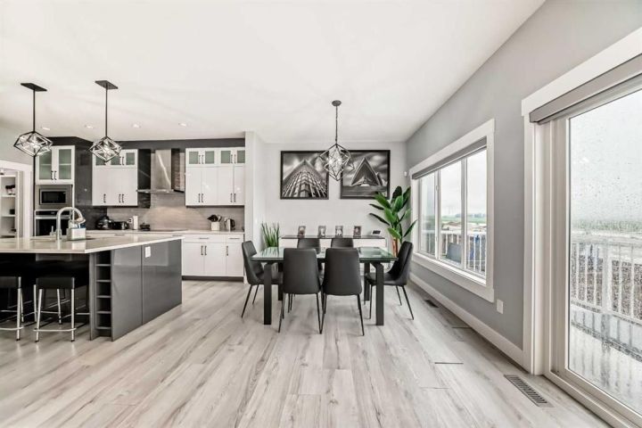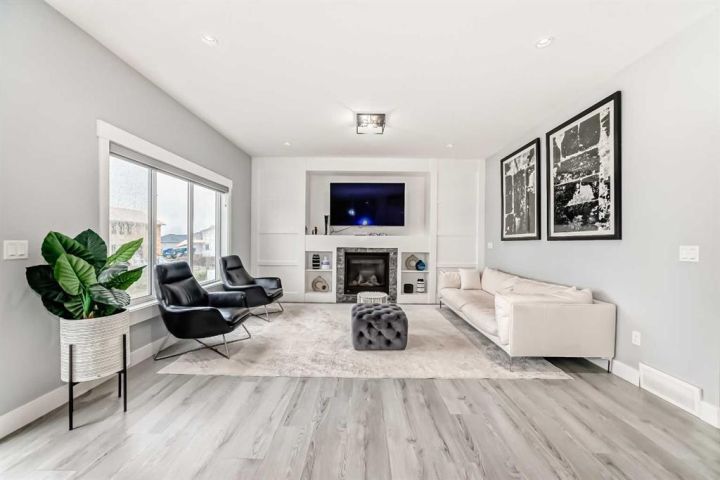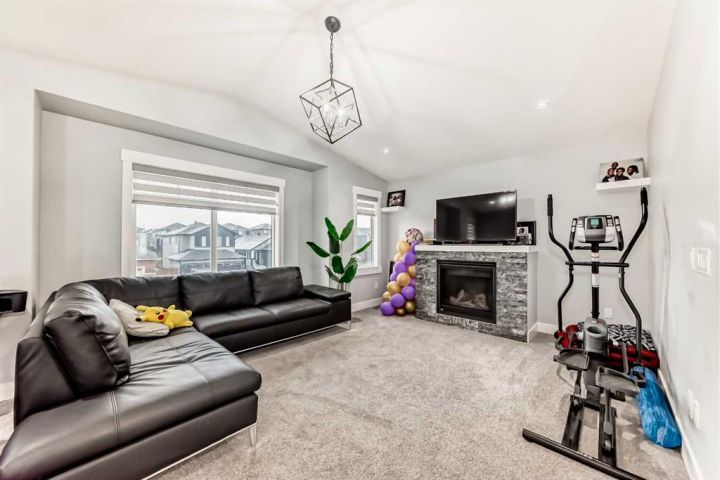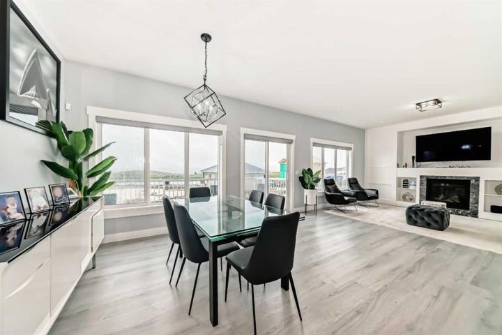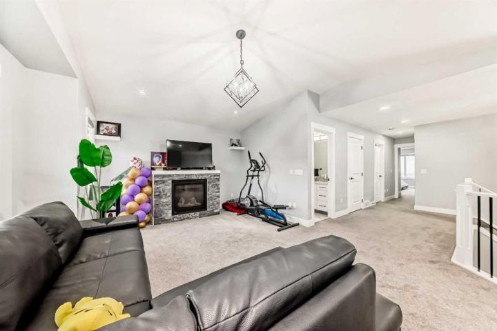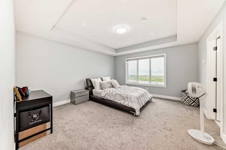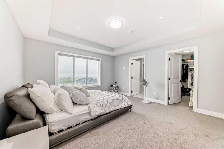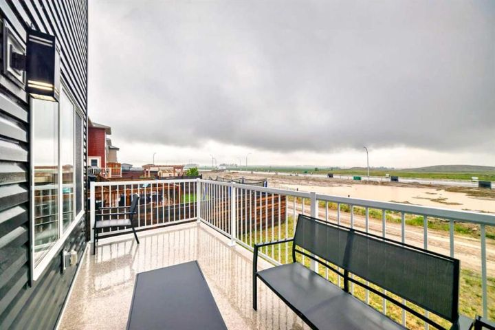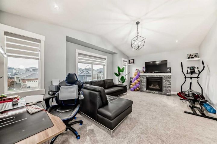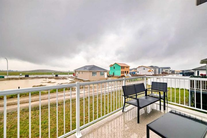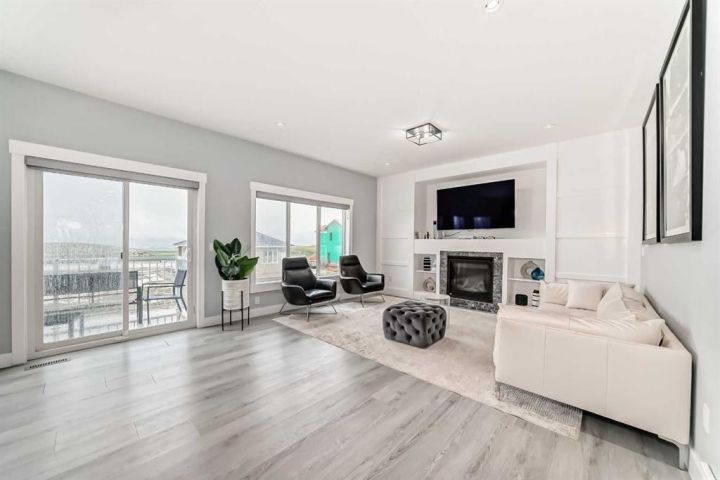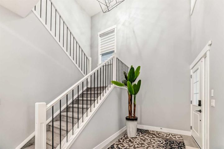 Nestled in the charming town of Crossfield, you'll find a community offering small-town tranquility with convenient city access. Families appreciate local schools like Crossfield Elementary and W.G. Murdoch, fostering a supportive environment from kindergarten through Grade 12. Crossfield's peaceful ambiance is a welcome escape, yet Calgary is just a 35-40 minute drive, making commutes manageable. Arriving at Iron Landing Way, you'll immediately sense the quiet, friendly feel of the street leading to this exceptional two-story home. Step inside the grand foyer with its soaring 20-foot ceilings, creating an immediate sense of spacious luxury. Modern comfort is enhanced by stylish zebra-style blinds; the larger foyer and patio door blinds are automated for effortless light control. The heart of this home is its expansive, open-concept main floor, filled with natural light. The gourmet kitchen is a chef's dream, featuring sleek white cabinetry with black accents, high-end stainless steel appliances, and an oversized central island perfect for gathering. A spacious walk-in pantry, with walk-through access from the garage, makes bringing in and organizing groceries incredibly easy. Seamlessly flowing from the kitchen, the bright dining area connects to the comfortable living room, where a cozy Napoleon fireplace creates a warm, inviting atmosphere. The patio door opens to a private balcony, ideal for morning coffee or unwinding with views. A stylish powder room and a dedicated main floor office add convenience and versatility. Practicality shines with a well-appointed mudroom, complete with built-in storage and hooks, thoughtfully located near the garage entrance for smooth daily transitions. Upstairs, discover a serene, massive primary suite, designed as your ultimate private retreat. This sanctuary features a luxurious, spa-like ensuite bathroom with dual vanities, a spacious walk-in shower, and contemporary finishes. The primary suite also boasts an impressively large walk-in closet. The two other generously sized upstairs bedrooms each come with their own walk-in closets, ensuring comfort and privacy. An expansive bonus room or den is situated over the oversized triple attached garage, offering flexible space for media, play, or hobbies. An upper-floor laundry room makes chores remarkably convenient, and a beautifully designed family bathroom serves the secondary bedrooms. The side-entrance sunshine basement is an exciting opportunity, ready for future development with municipality compliance. You will have to check with municipality for guidelines. Completing this exceptional package, the home's exterior showcases attractive modern siding and the impressive triple attached garage, enhancing both curb appeal and everyday functionality. This exquisite property is a perfect blend of style, space, and thoughtful features, ready for your family's next chapter in Crossfield.