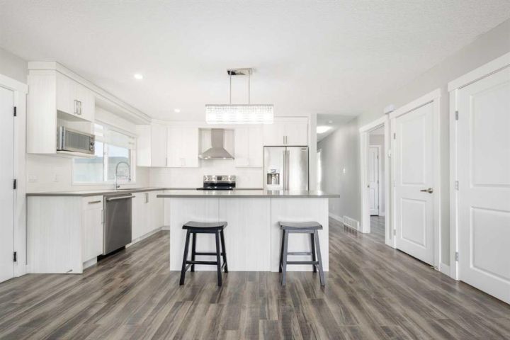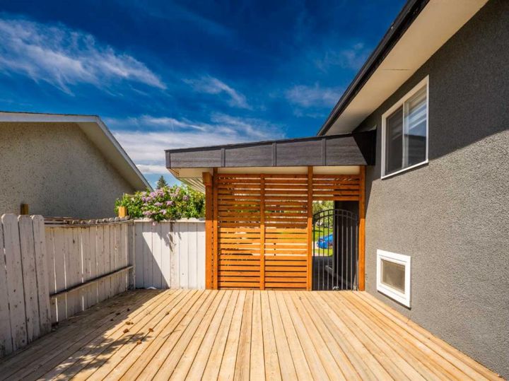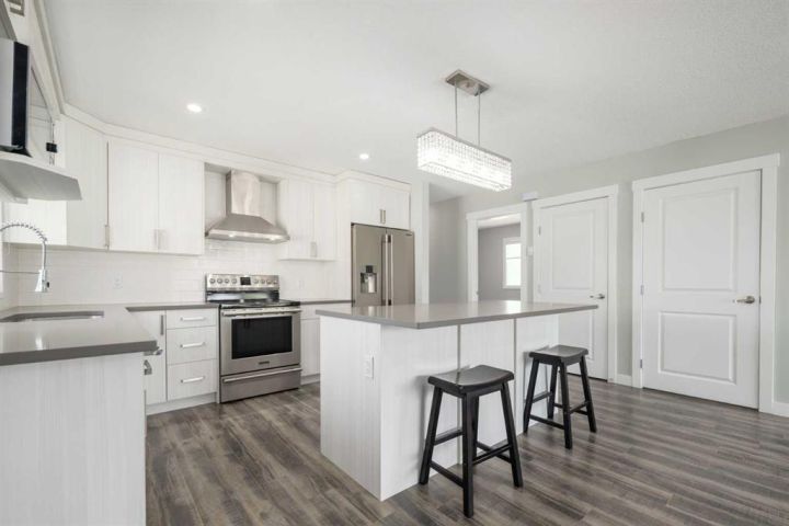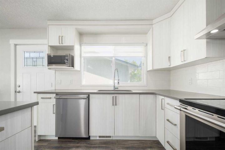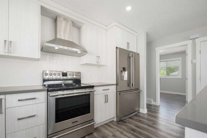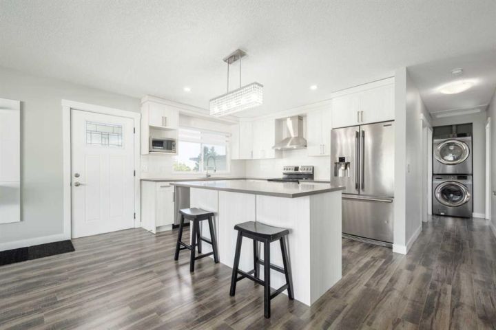 This beautifully updated home offers incredible value and flexibility, perfect for both homeowners and investors alike. Set on a quiet street with easy access to transit, schools, shopping, and parks, this property has been thoughtfully renovated from top to bottom in 2018 (including a new roof) for peace of mind and modern comfort. The main level boasts +1,000 sq ft of bright, stylish living space with laminate plank flooring, large windows that brighten the home with natural light and a cozy wood-burning fireplace that anchors the main living area. The kitchen features a large central island w/breakfast bar seating, pristine off-white cabinetry with silver hardware, dual sink with window overlooking the backyard and SS appliances including french door fridge w/bottom freezer, electric stove, OTR hood fan, built-in dishwasher & microwave, perfect for any home chef. A door leading to the side deck and into the backyard makes hosting summer BBQs a breeze. The main layout also includes three generously sized bedrooms, a full 3pc bathroom (with glass shower) and a convenient 2pc ensuite in the primary bedroom. The lower level features a fully finished basement suite (illegal) with its own separate entrance, ideal for extended family or potential rental income. This suite includes large windows, updated SS appliances (fridge, stove, OTR hood fan & microwave), private laundry (side-by-side washer & dryer), and an efficient layout for comfortable, independent living. 2 good-sized bedrooms (one w/ walk-in closet) a shared 4pc bathroom (w/ tub/shower combo) & large rec room (customizable to your liking) nicely finish off the lower level. Outside, enjoy summer evenings on the newer patio, perfect for gatherings, while the paved carport offers stylish and functional covered parking for the winter months. With all the major updates complete, this home is move-in ready and a smart option in a location that truly delivers. Don't miss your opportunity to own this gem! Schedule your viewing today!