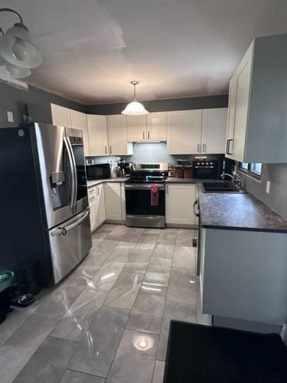 This affordable family home located on a quiet Crescent with an oversized yard for all of your family activities. The bright and spacious living room looks onto the dining space that is open to the newly renovated kitchen. The kitchen renovation includes new tile floor, new cabinets with under cupboard lighting, new counters, all updated stainless steel appliances including the new dishwasher in 2025 and the garden door that leads to the 3 season, screened in patio, giving you an extension of the existing living space. The upper floor of the home has 3 bedrooms, including the primary bedroom that is large enough to host a king sized bed. There is also an updated 4 piece bath with a newer vanity, toilet, tub and full tile tub surround on the upper floor. The lower level has a great family room with a wood burning fireplace for those chilly, rainy nights. This lower level is a walkout giving you access from the back yard to the 2 piece bathroom that is shared with the laundry room, boasting a new washer and dryer. There is plenty of storage in the crawl space that extends beyond the utility room. The ceilings in the main living areas have been recently scrapped, mudded and sanded and will be painted prior to possession. the furnace was replaced within 10 years and the bay window that is double hung, to open up or down and pops out for easy cleaning is also new. The expansive yard has plum, cherry and apple trees along with raspberries. The fully fenced back yard was recently scrapped, re-seeded and had underground sprinklers installed. There is a new concrete patio in the front of the home along with one in the back. There is ample parking at the side of the home and an additional parking pad at the rear of the property. Another great feature of this oversized yard is the park like setting in the side yard by the post office boxes. So many great features, have a look today and GET MOVING IN THE RIGHT DIRECTION!