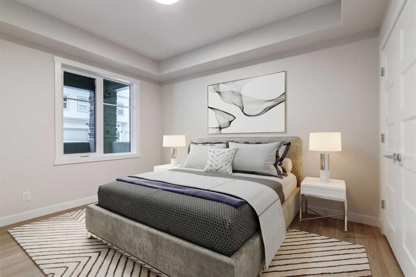 The Whitney is an impeccably designed boutique condo building, situated in the esteemed Aspen Park/Springbank Hill area. Your new home graces one of the finest locations, nestled beside a protected environmental reserve (ravine) that winds through the community, offering extensive recreational walking paths. The Whitney boasts stunning mountain, prairie, and community vistas, with Aspen Landing just a 5-minute stroll away and Downtown a quick 10-minute drive. Your new 2 bed/2 bath BROADWAY unit offers 1161 sq.ft. of architectural measurement (1,091 sq.ft. RMS measurement) of living space, inclusive of en-suite laundry, open concept living, a large patio, air-conditioning, titled underground parking (extra parking is available for purchase), luxury vinyl plank flooring, quartz counters, custom cabinetry, designer tile, stainless appliances, and additional walk-in storage. Developed by Cove Properties, one of Calgary’s most respected multifamily builders known for their dedication to quality craftsmanship. An annual HOA fee is anticipated, though not yet finalized. Please note that all photos shown are from Cove Properties' previous show suites and are intended to illustrate the level of interior finishes that can be expected at The Whitney. BUILDING IS COMPLETE AND MOVE IN READY! This is a limited opportunity to own in one of Calgary’s most desirable southwest communities. Contact your agent today to arrange a private viewing of the unit.