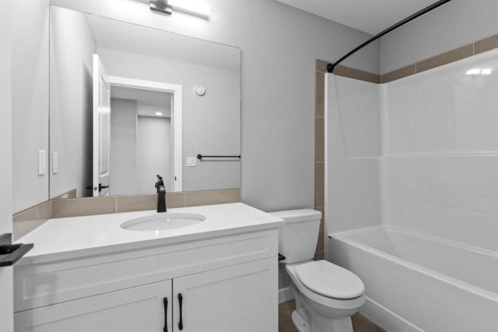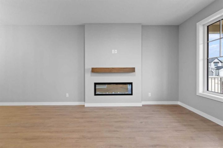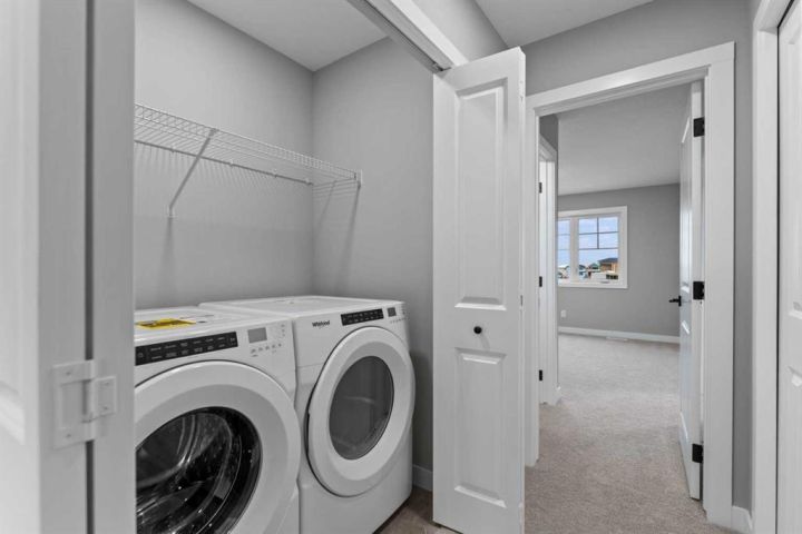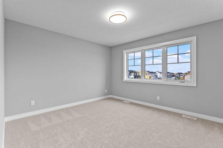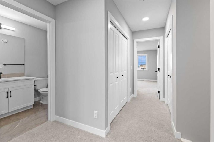 IMMEDIATE POSSESSION | 1,569 SQ.FT. | 3-BED | 2.5-BATH | SEPARATE SIDE ENTRANCE | 9' BASEMENT | UPGRADED KITCHEN | FRONT LANDSCAPING | This stylish NEW HOME by Crystal Creek Homes offers an OPEN MAIN FLOOR with 9-foot ceilings and a stunning rear kitchen designed for everyday function and entertaining. Full-height cabinets, quartz countertops, a GAS RANGE, and a large island provide plenty of space for cooking and storage. The great room, complete with an electric FIREPLACE, feels bright and welcoming. Upstairs are three bedrooms, a main bath, and an extra LARGE LAUNDRY ROOM. The primary bedroom includes a modern ensuite with thoughtful finishes. The 9' BASEMENT and separate SIDE ENTRANCE allow for future legal suite potential (subject to City approval and permitting). Set on a quiet street near a future school and soccer field, this home features durable HARDIE BOARD SIDING and quick access to Stoney Trail, East Hills shopping, and downtown Calgary. Book your showing today!