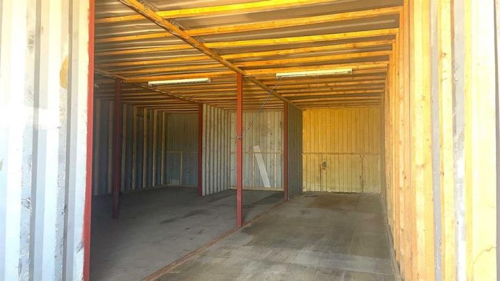 White C-can, 3 C-can's welded together, Disassembled Garage Door, Ladder, Office Furniture