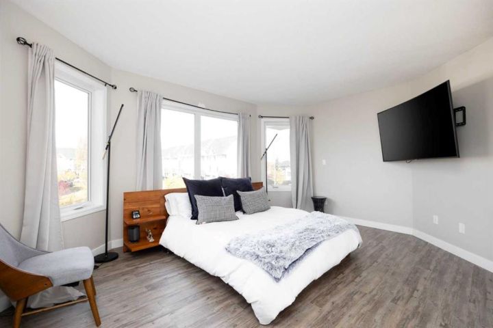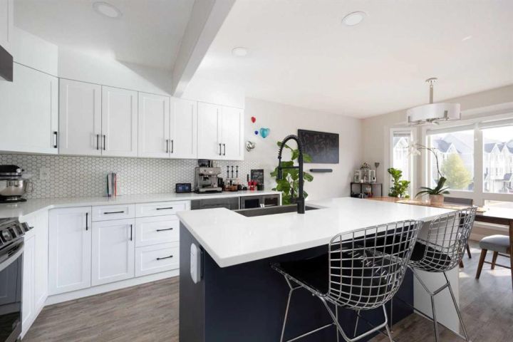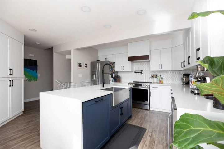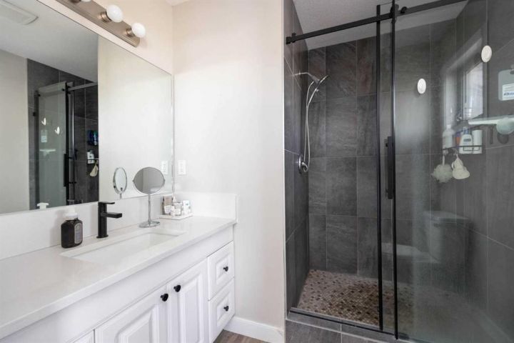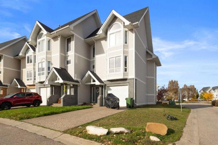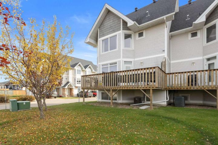 Welcome to 97 Wilson Drive Unit 56 – A stylish end-unit townhome in the heart of Wood Buffalo! This beautifully maintained townhome offers over 1,600 sq ft of modern living space across five well-designed levels, complete with 4 bedrooms, 3.5 bathrooms, a fully developed basement, and an attached garage complete with an electric heater for added convenience. Step inside to find a bright, open layout featuring neutral paint tones and stunning vinyl plank flooring that create a warm and welcoming ambiance. The spacious living room boasts high ceilings, large windows, and a cozy corner gas fireplace—the perfect place to unwind. From here, step out onto your private back deck, ideal for relaxing or entertaining in the warmer months. The upper level features a sleek, sunlit eat-in kitchen that has been completely remodelled in 2024, featuring brand new maple Shaker-style soft-close cabinetry, quartz countertops, a central island, and stainless steel appliances—offering both function and flair for everyday living. Retreat to the private primary suite on its own level, complete with a 3-piece ensuite featuring a tiled stand-up glass shower and a convenient laundry area with stackable washer and dryer. The top level offers two additional bedrooms and a shared 4-piece bathroom, while the fully finished basement adds a fourth bedroom, another full bathroom, and a utility/storage room—great for guests or growing families. Perfectly located just steps from parks, playgrounds, hiking trails, and the Fort McMurray Golf Club, this home combines nature, comfort, and convenience in one of Fort McMurray’s most sought-after communities. Whether you’re a first-time buyer, downsizing, or looking for a great investment, this home is move-in ready and full of value. Call today to book your personal viewing.